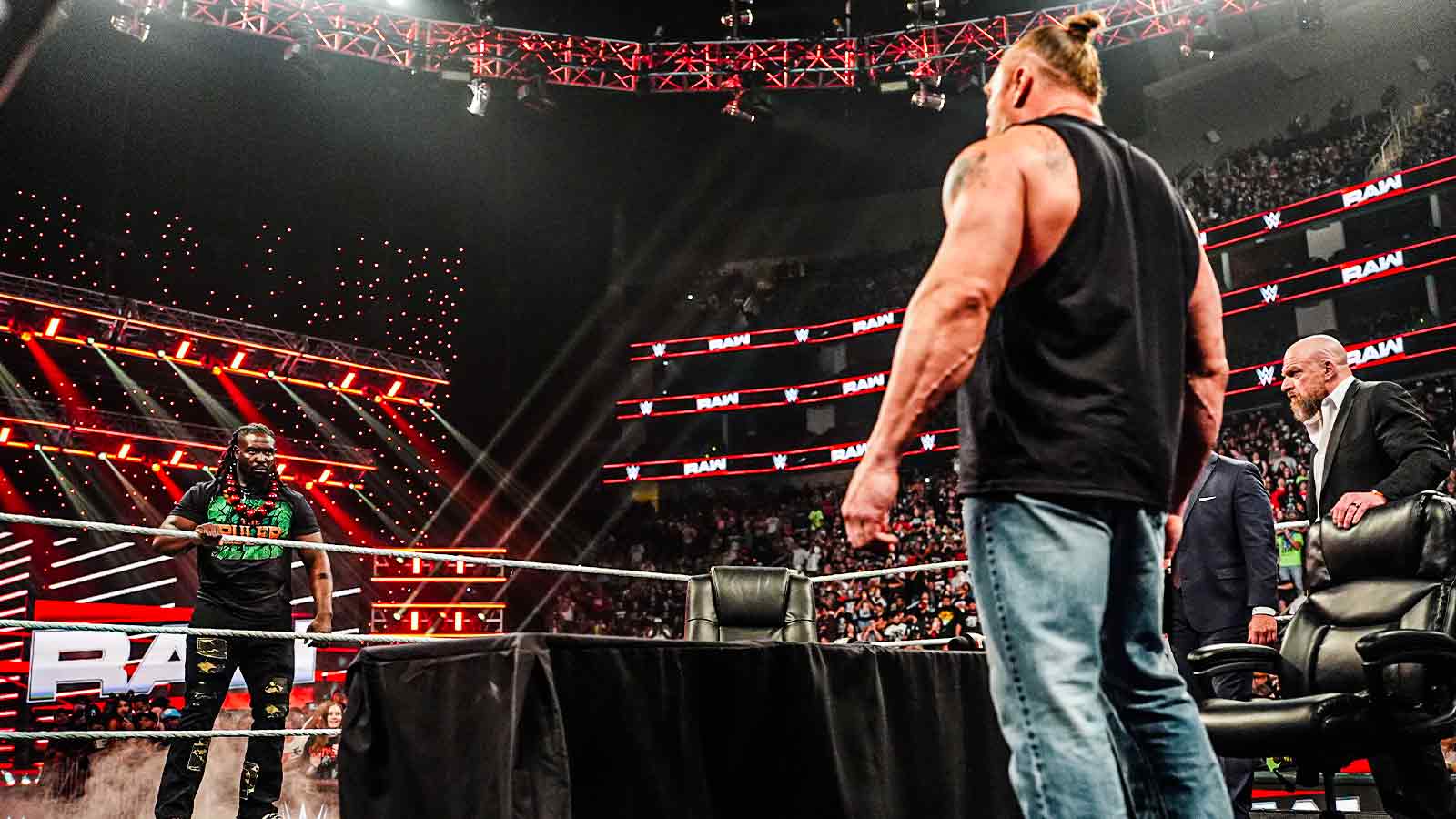 It was announced as a contract signing, and both Brock Lesnar (along with our boss, his Advocate, Paul Heyman) and Oba Femi were eager to sign for this historic match. But they both were more interested in getting hands on the other!