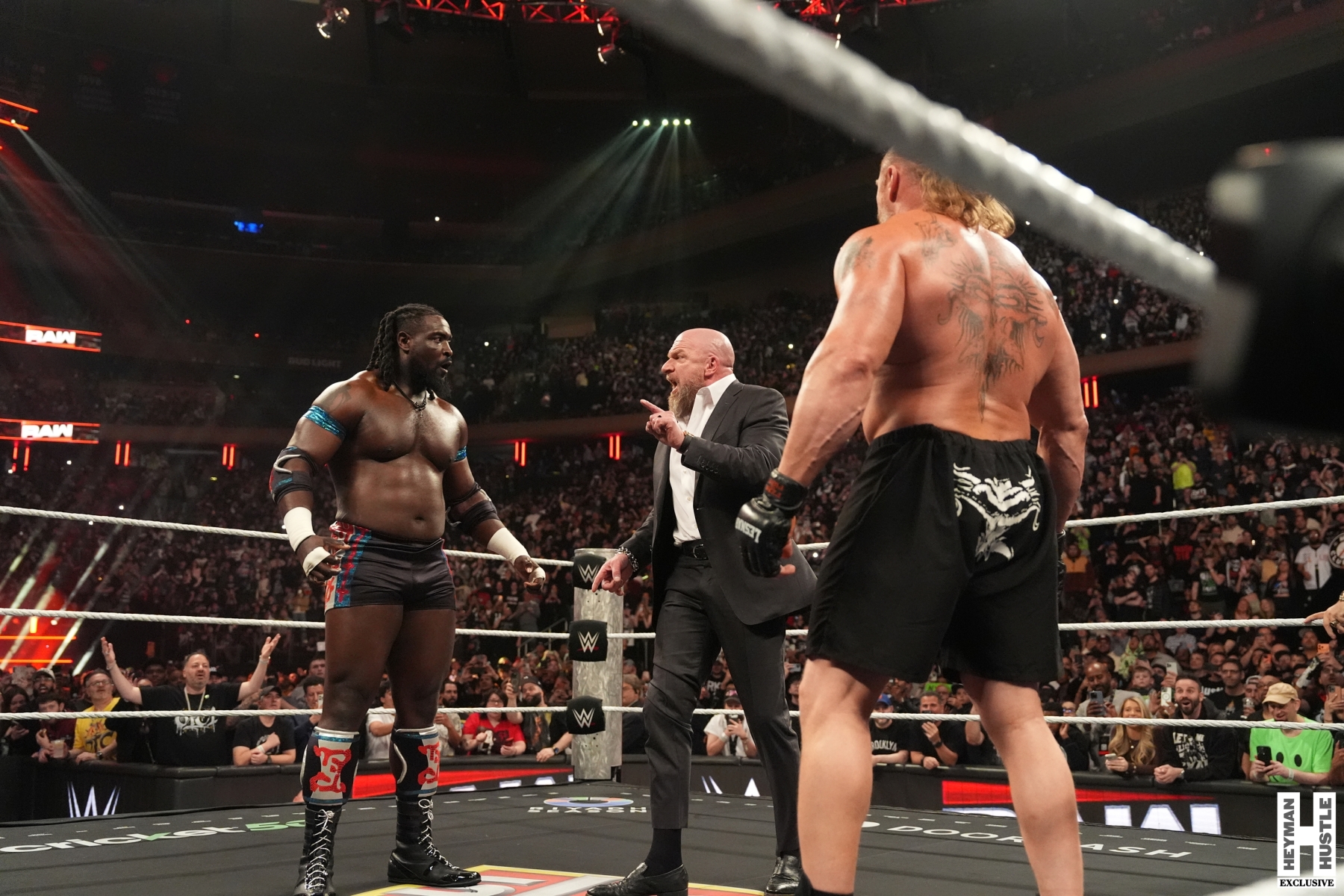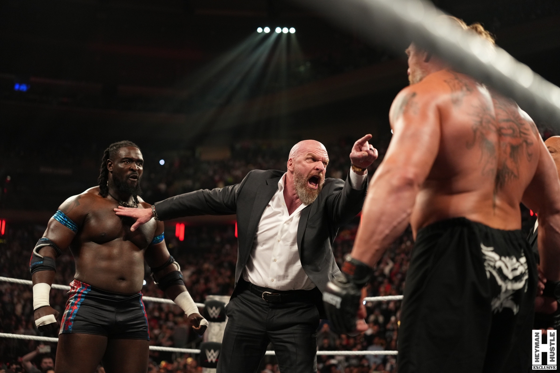 There’s an old expression in the pro wrestling business about capturing lightning in a bottle, and that was certainly the case tonight at the World’s Most Famous Arena, Madison Square Garden when Brock Lesnar (along with his Advocate, our boss Paul Heyman) went face-to-face with Oba Femi, only to be kept apart by Paul “Triple H” Levesque.