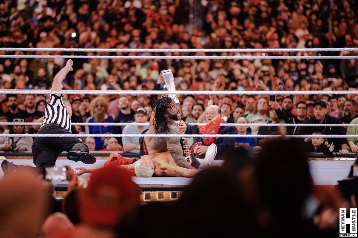 The greatest prize in WWE was on the line as “The Tribal Chief” Roman Reigns defended the Undisputed WWE Universal Championship against the 2023 Men’s Royal Rumble Winner, “The American Nightmare” Cody Rhodes, in the main event of night 2 of WrestleMania. The Heyman Hustle‘s Chris Horrell was in attendance to provide exclusive 360 coverage of the most successful WrestleMania of all time.