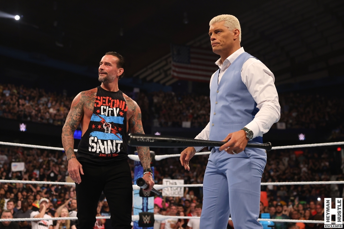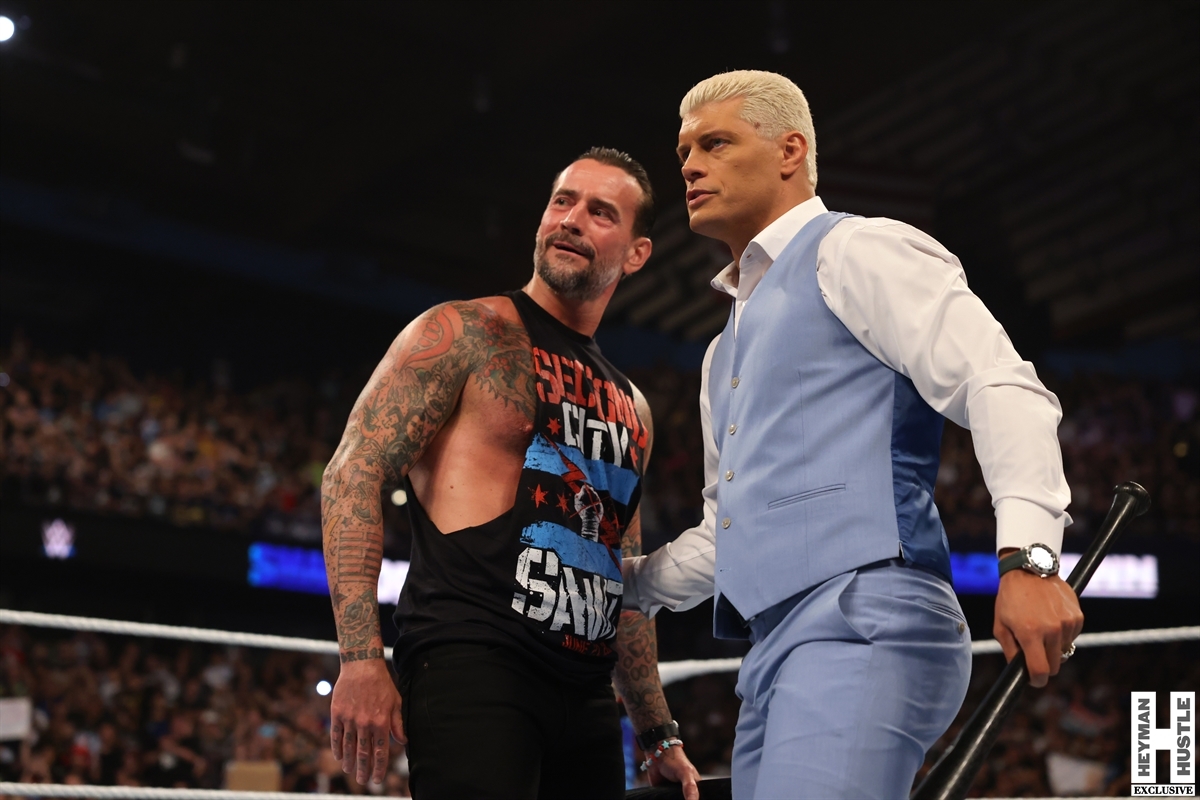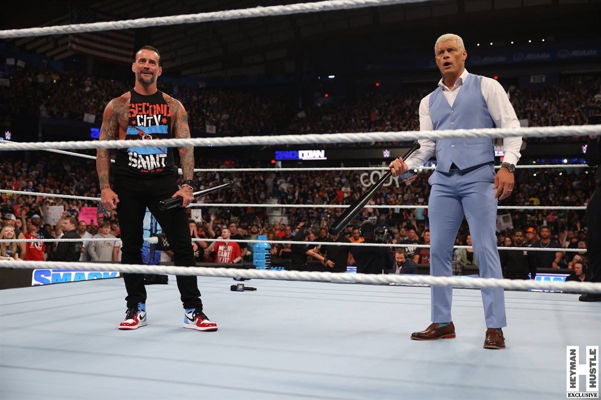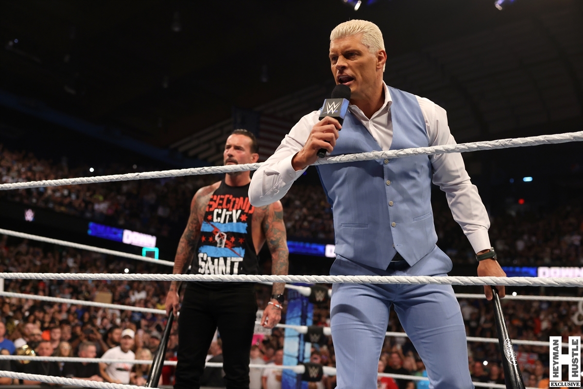 Add Undisputed WWE Champion Cody Rhodes to the equation, and you have all the makings of an explosive opening to WWE Smackdown this week! Here are exclusive photos for The Heyman Hustle of a most memorable segment from the AllState Arena!