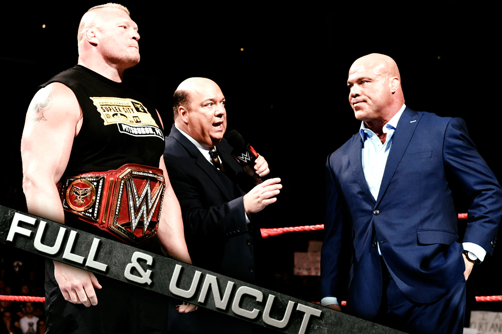 Brock Lesnar’s Advocate (our boss) Paul Heyman threw RAW General Manager Kurt Angle for a loop on Monday night when he announced that both Brock and Paul will leave WWE if the Universal Title changes hands at SummerSlam! We present to you, in its unedited entirety, Paul Heyman‘s shocking announcement …