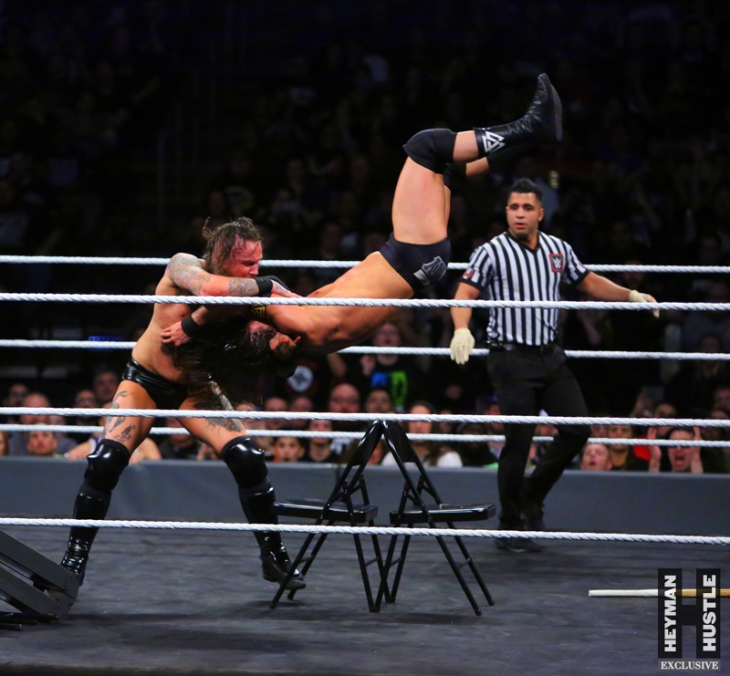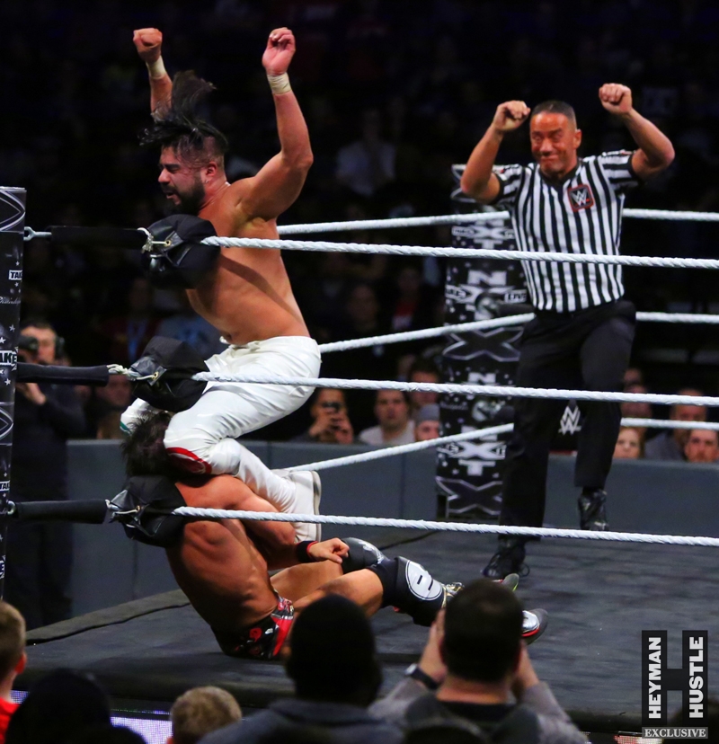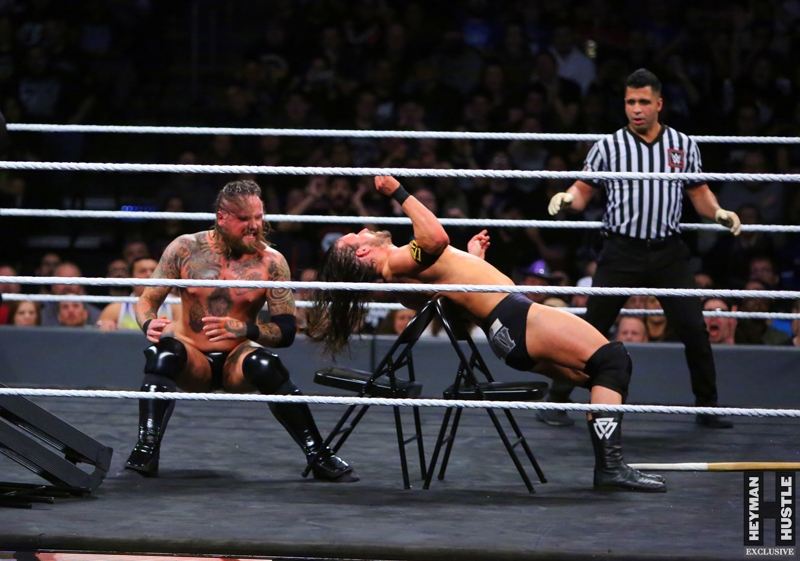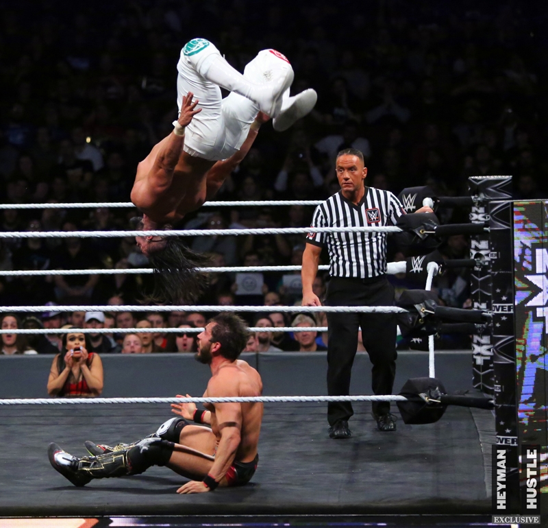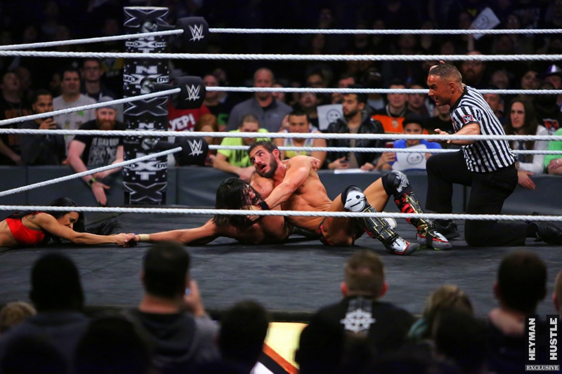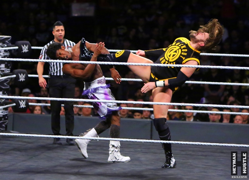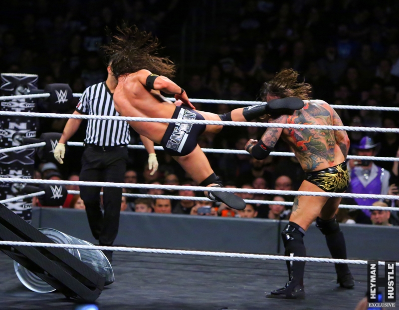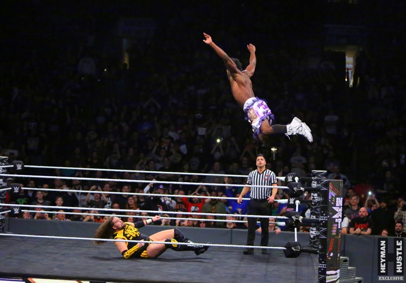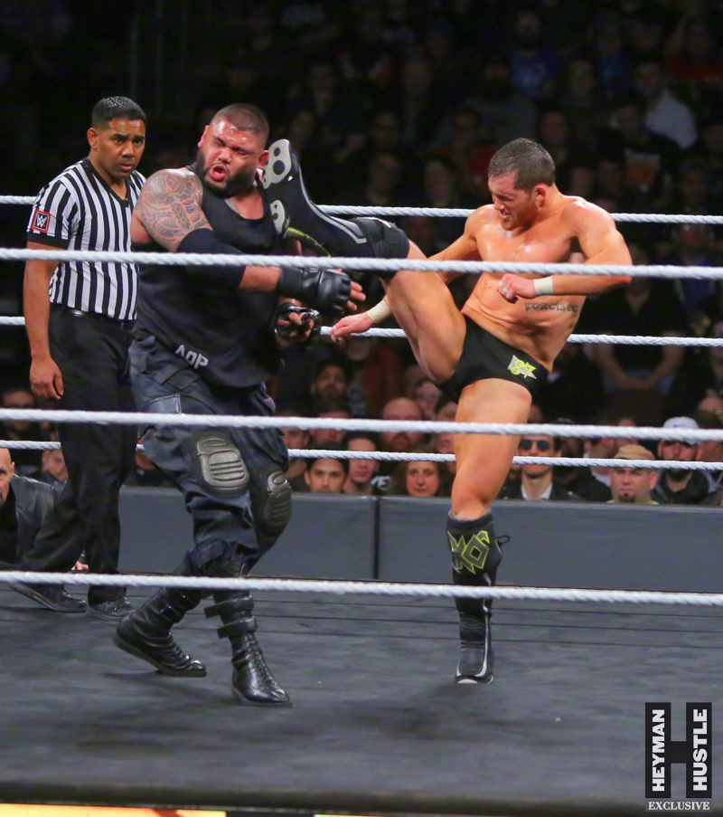 The men and women who will headline WrestleMania in the years to come put on an all time great show in the City of Philadelphia, as World Wrestling Entertainment‘s homegrown alternative brand NXT presented a live night of action on the WWE Network entitled NXT TakeOver: Philadelphia. The Heyman Hustle assigned sports photographer Bruno Silveira to cover the event, which featured NXT Champion Andrade “Cien” Almas defending the title against Johnny Gargano (who emerged as perhaps the single biggest superstar in NXT); Adam Cole vs Aleister Black in an Extreme Rules Match; NXT Women’s Champion Ember Moon in a title defense against Shayna Baszler; Velveteen Dream in a highly anticipated bout against Kassius Ohno; NXT Tag Team Champions Undisputed Era vs Authors of Pain.