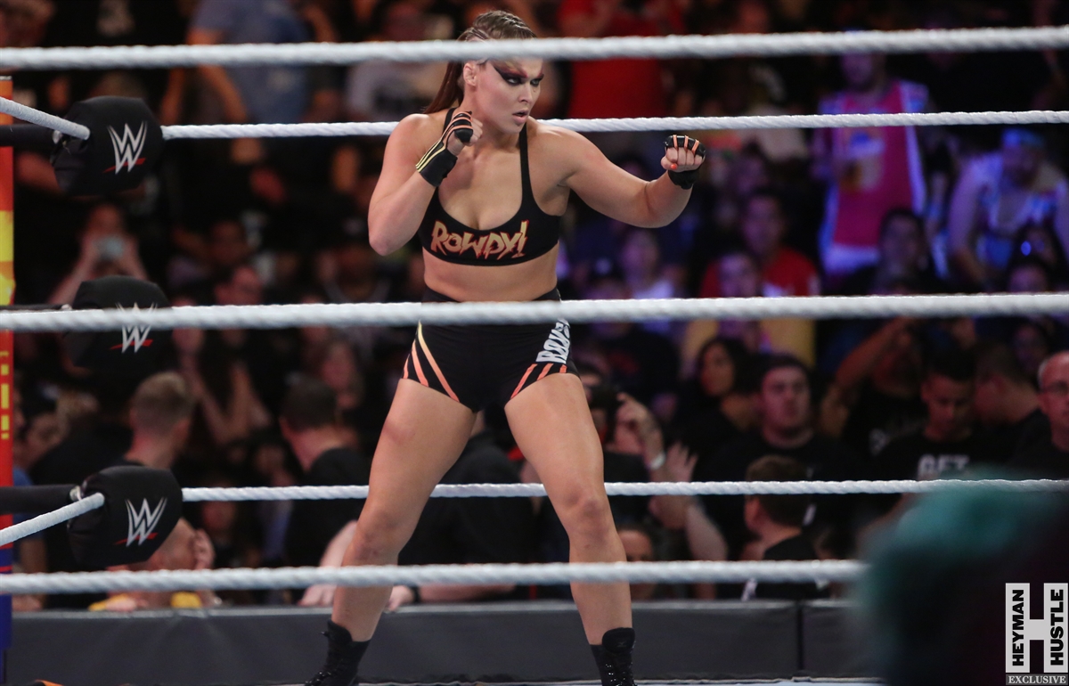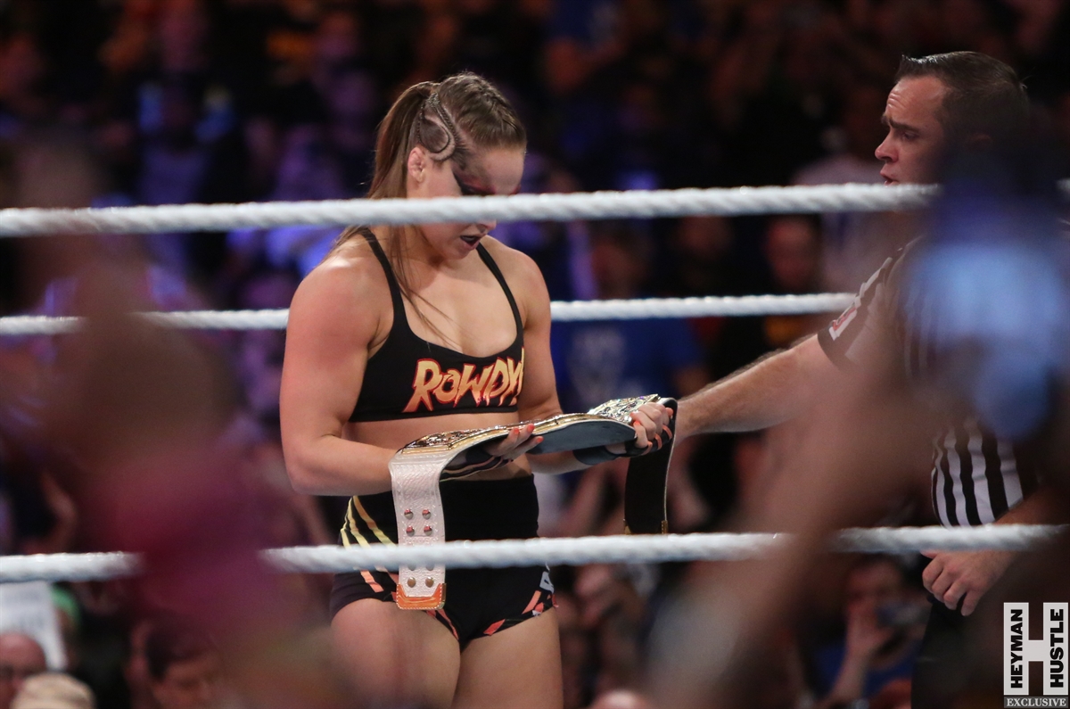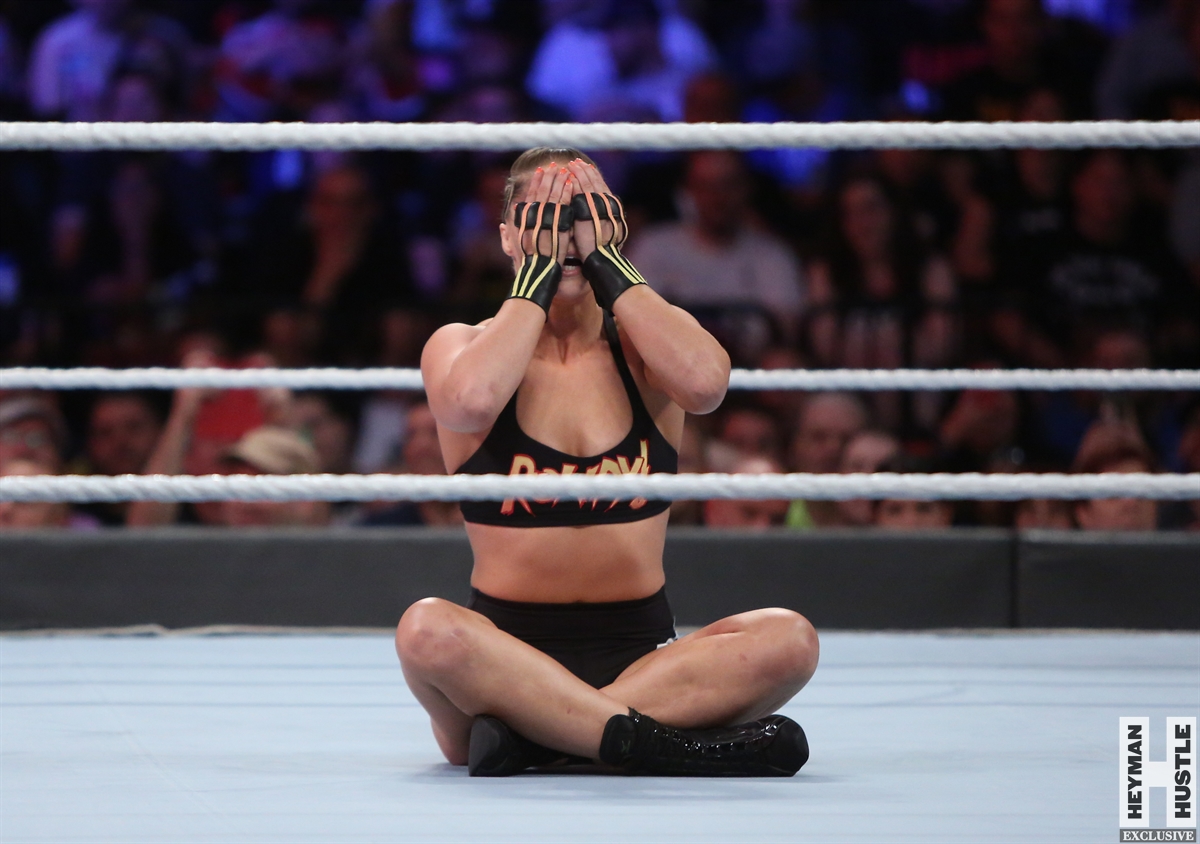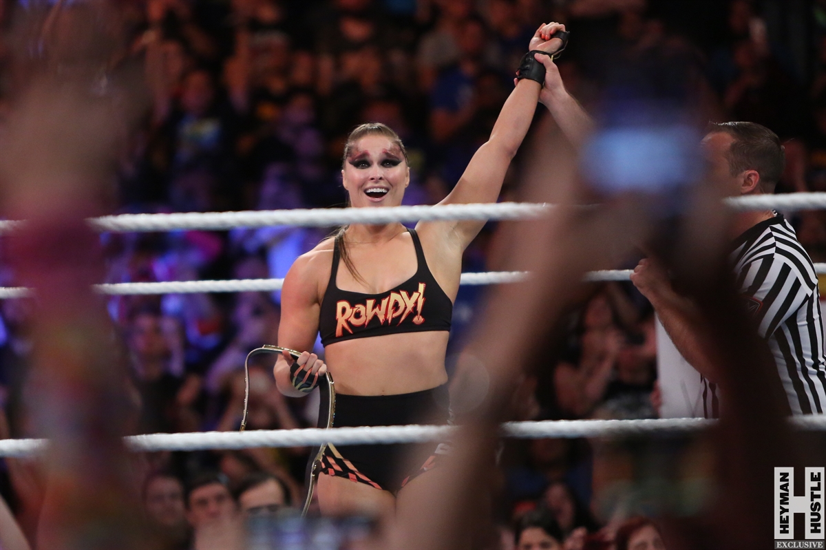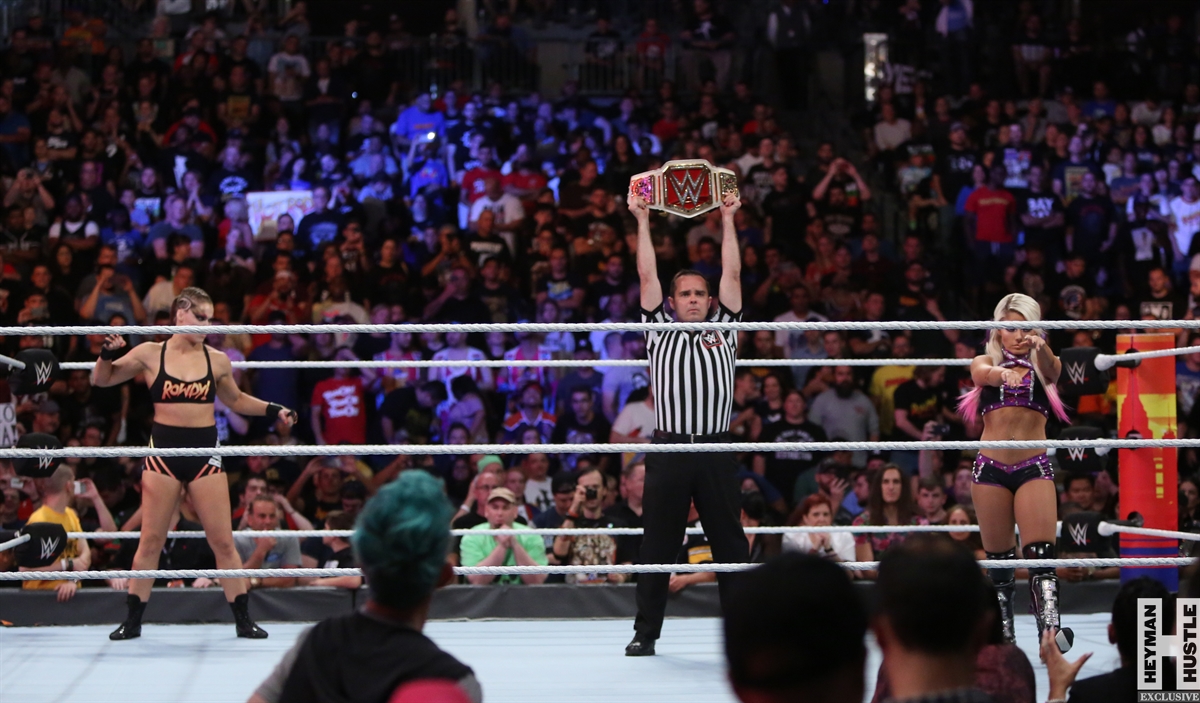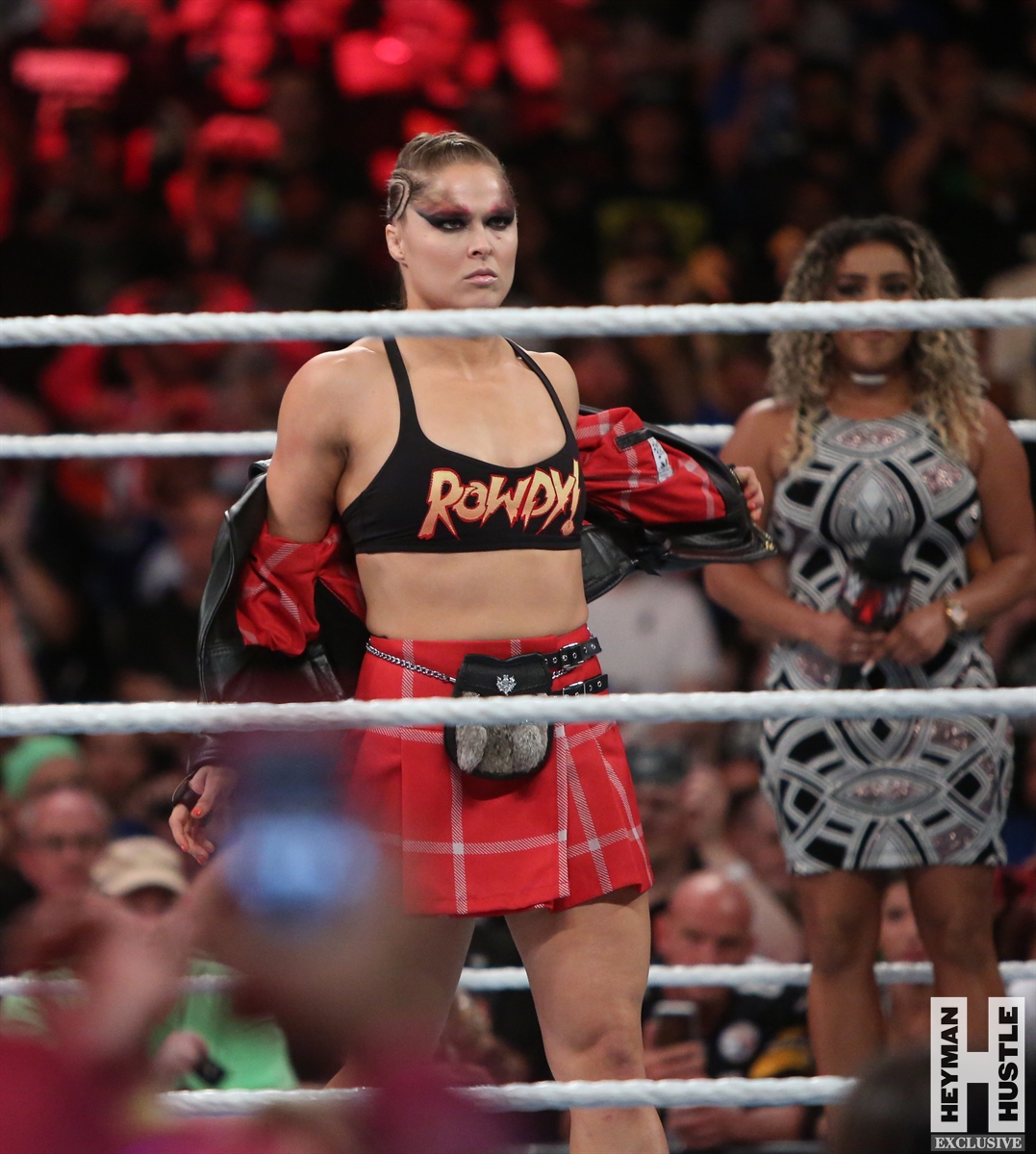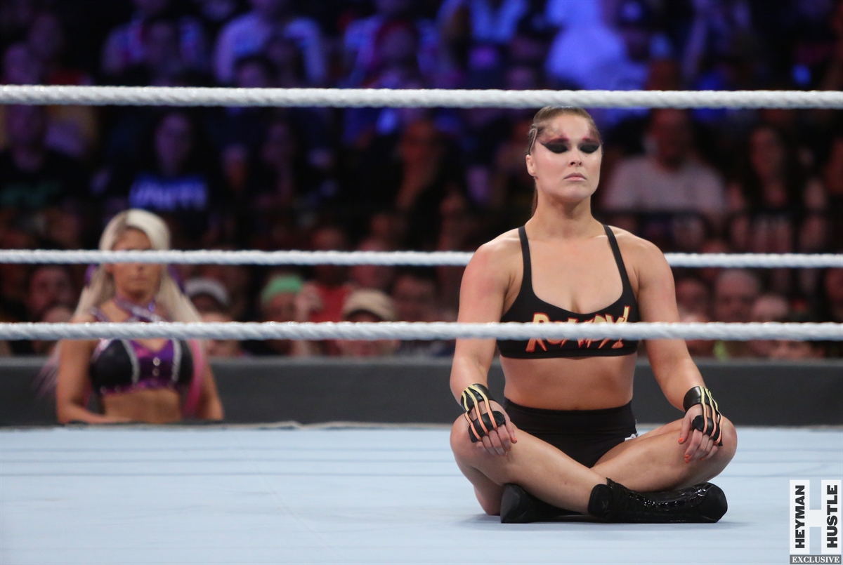 Rowdy Ronda Rousey made history at WWE SummerSlam, which took place earlier this evening at the Barclays Center in Brooklyn, New York, when she tapped out Alexa Bliss with an arm bar, becoming the Raw Women’s Champion and the first woman in history to hold championships in both UFC and WWE.