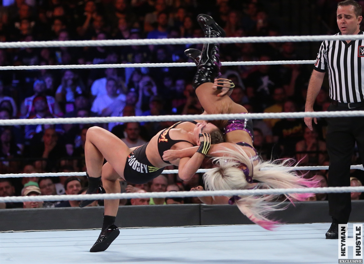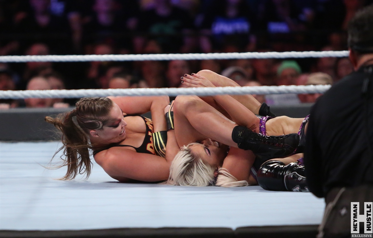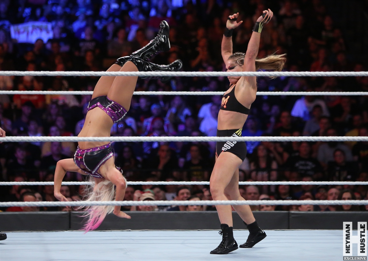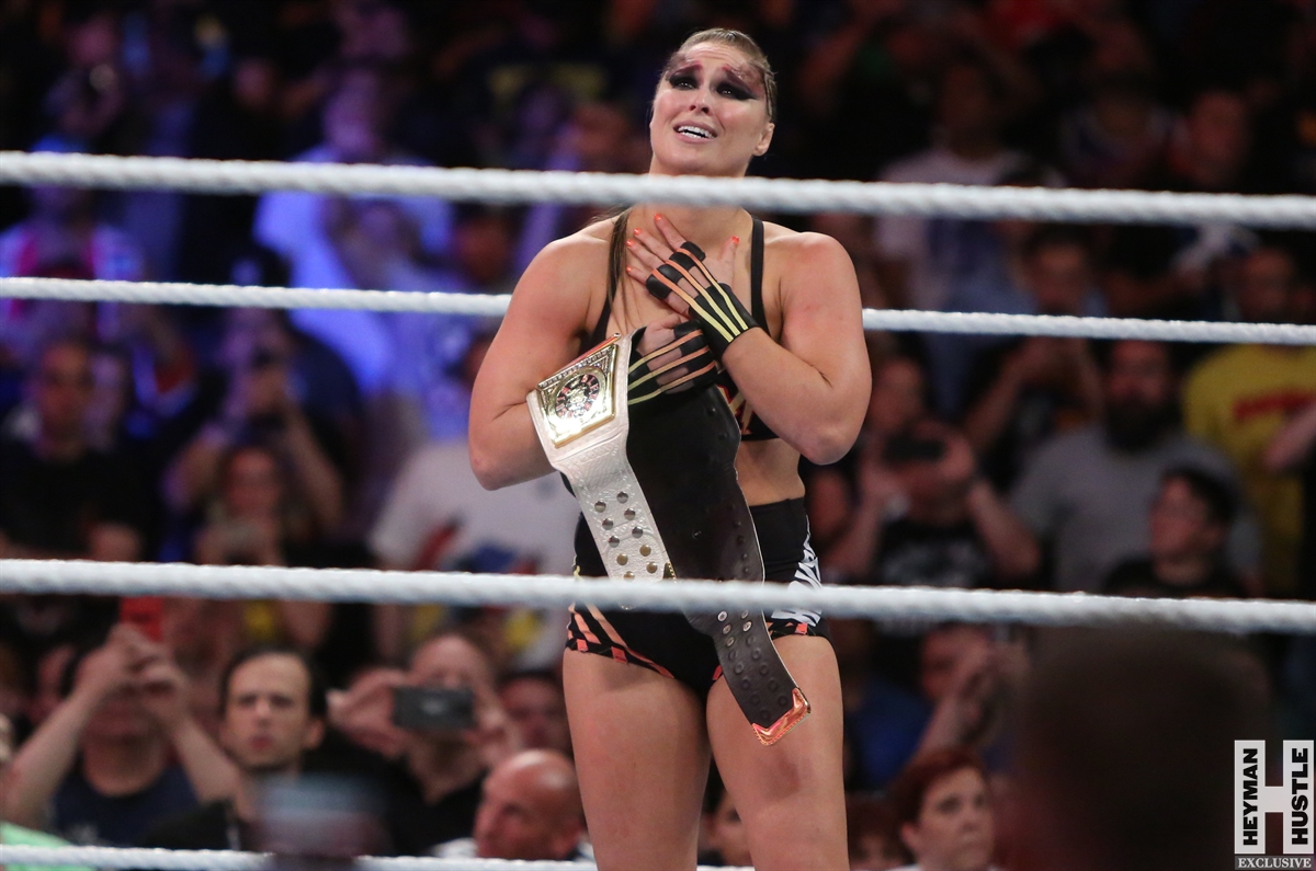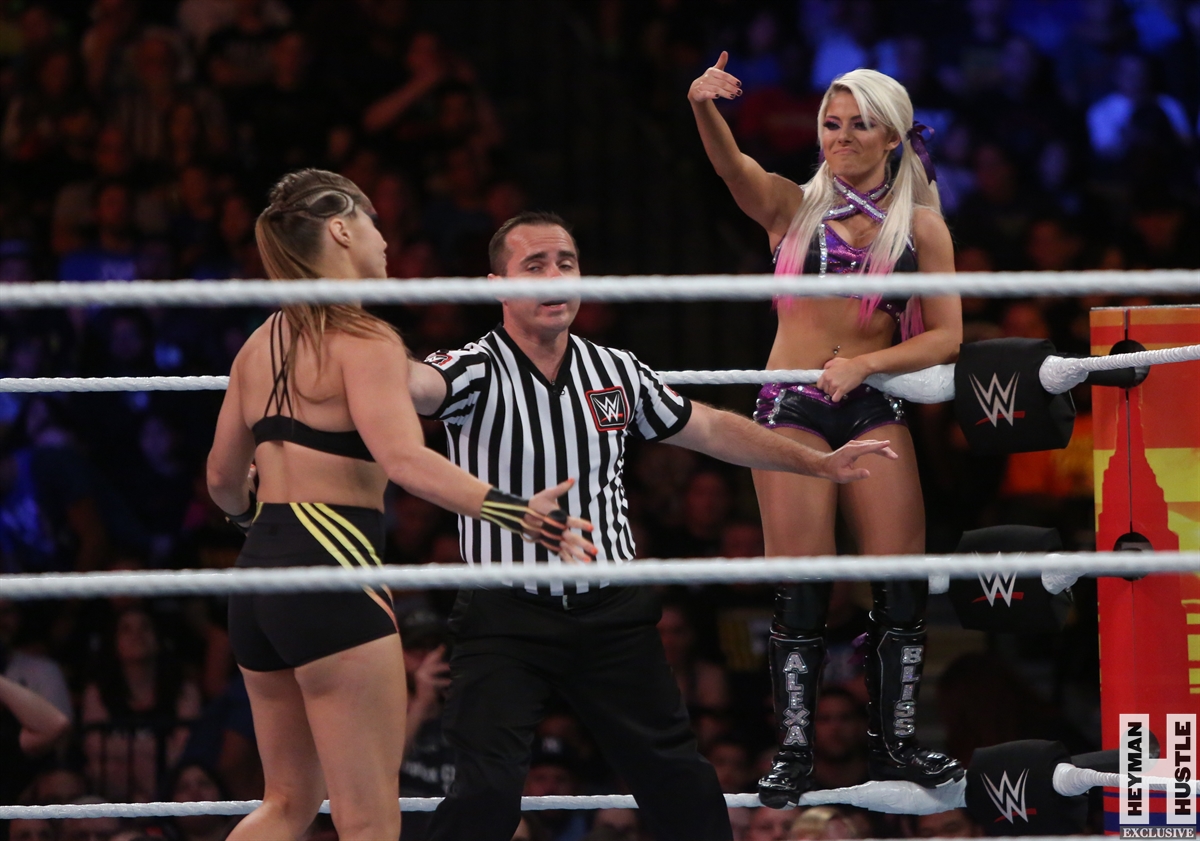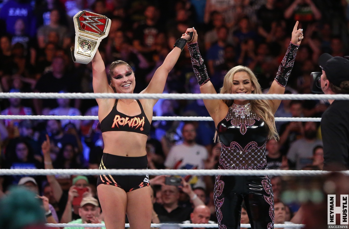 Rowdy Ronda Rousey made history at WWE SummerSlam, which took place earlier this evening at the Barclays Center in Brooklyn, New York, when she tapped out Alexa Bliss with an arm bar, becoming the Raw Women’s Champion and the first woman in history to hold championships in both UFC and WWE.