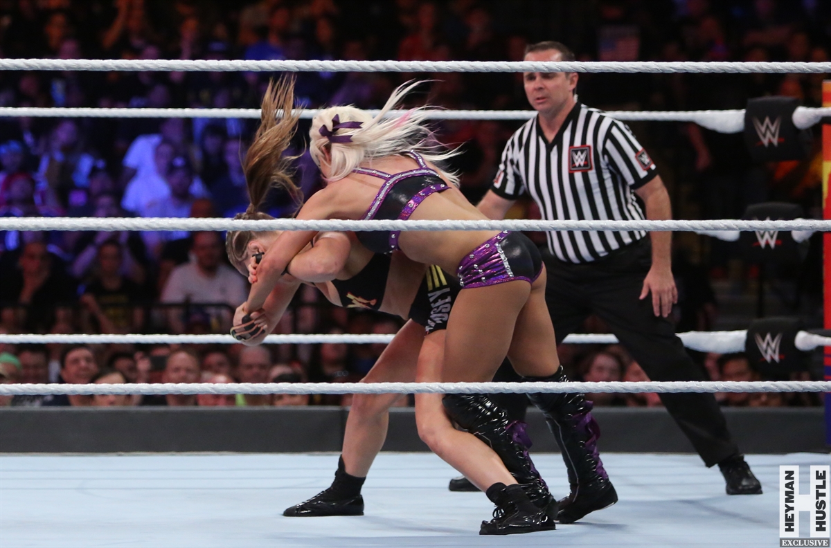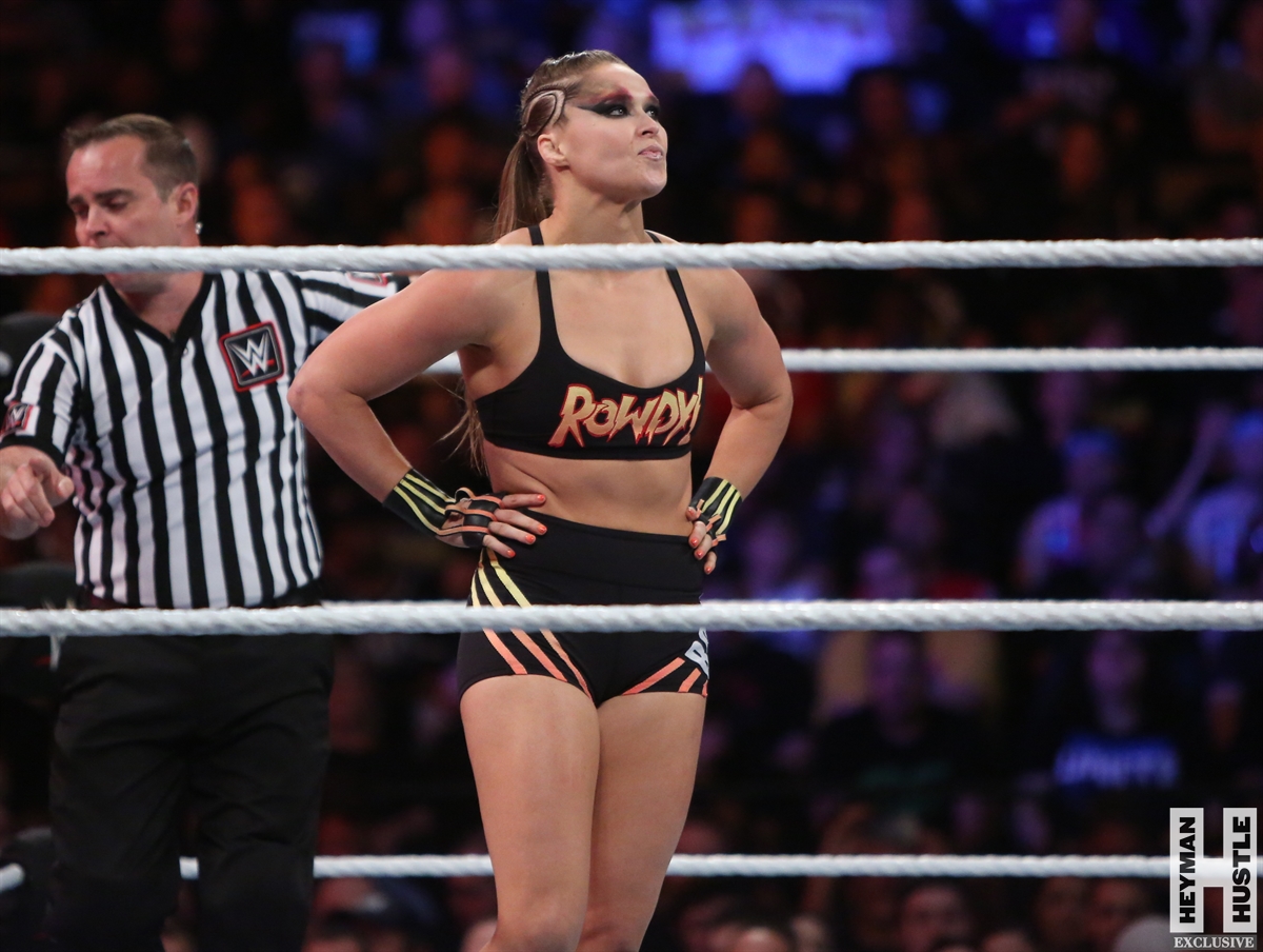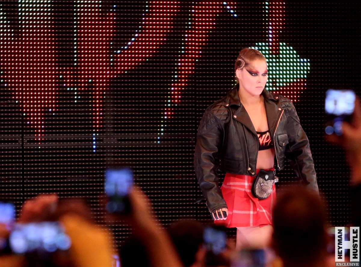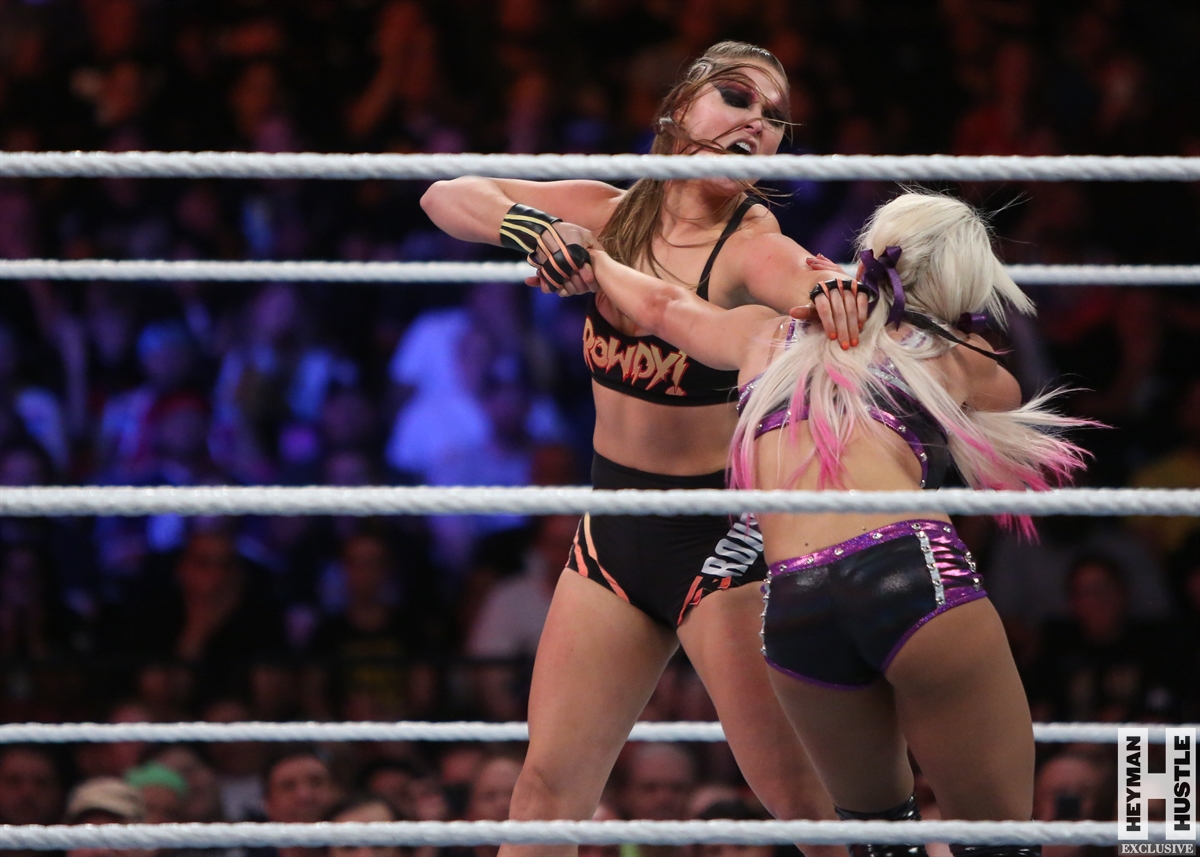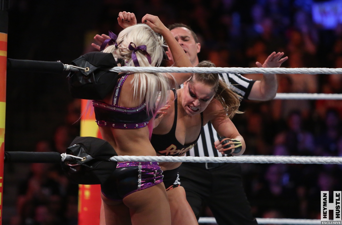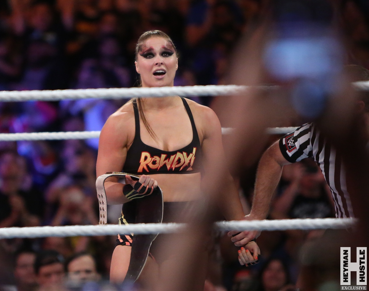 Rowdy Ronda Rousey made history at WWE SummerSlam, which took place earlier this evening at the Barclays Center in Brooklyn, New York, when she tapped out Alexa Bliss with an arm bar, becoming the Raw Women’s Champion and the first woman in history to hold championships in both UFC and WWE.