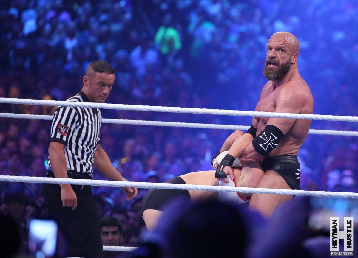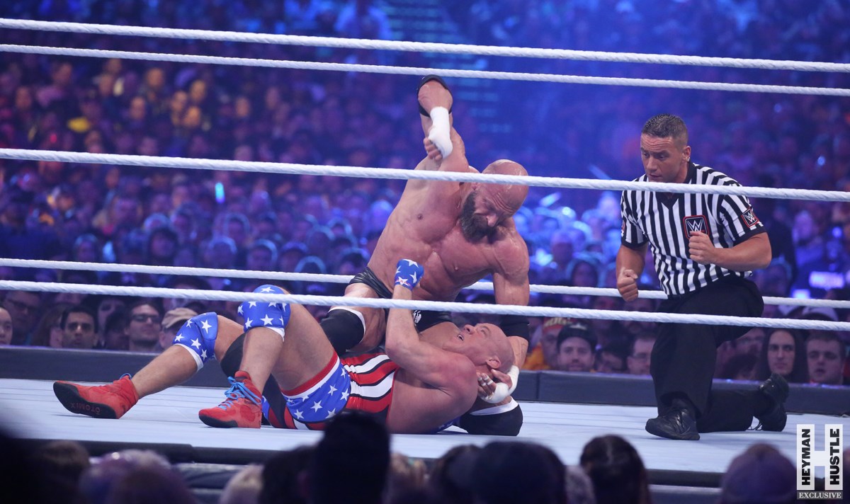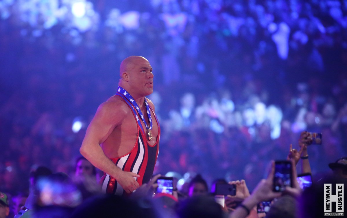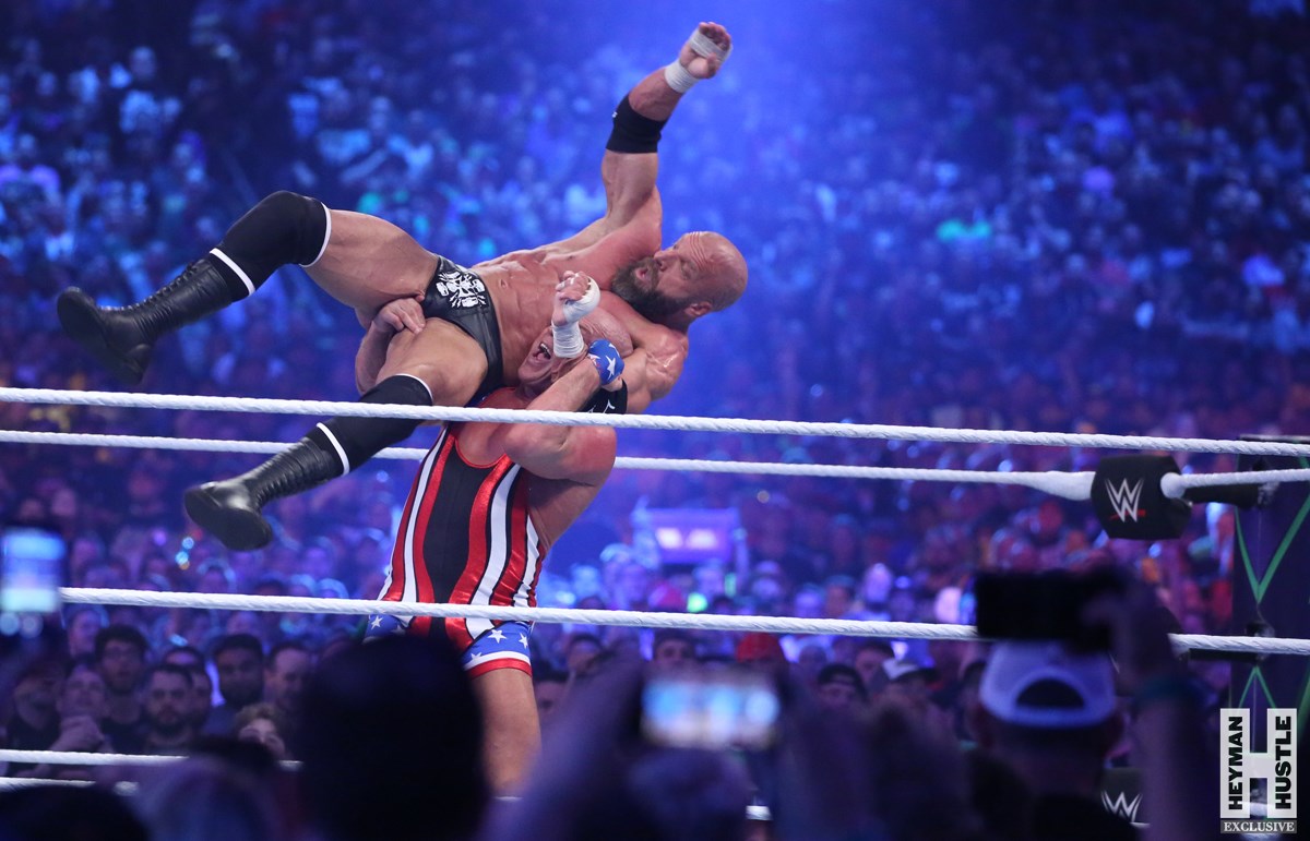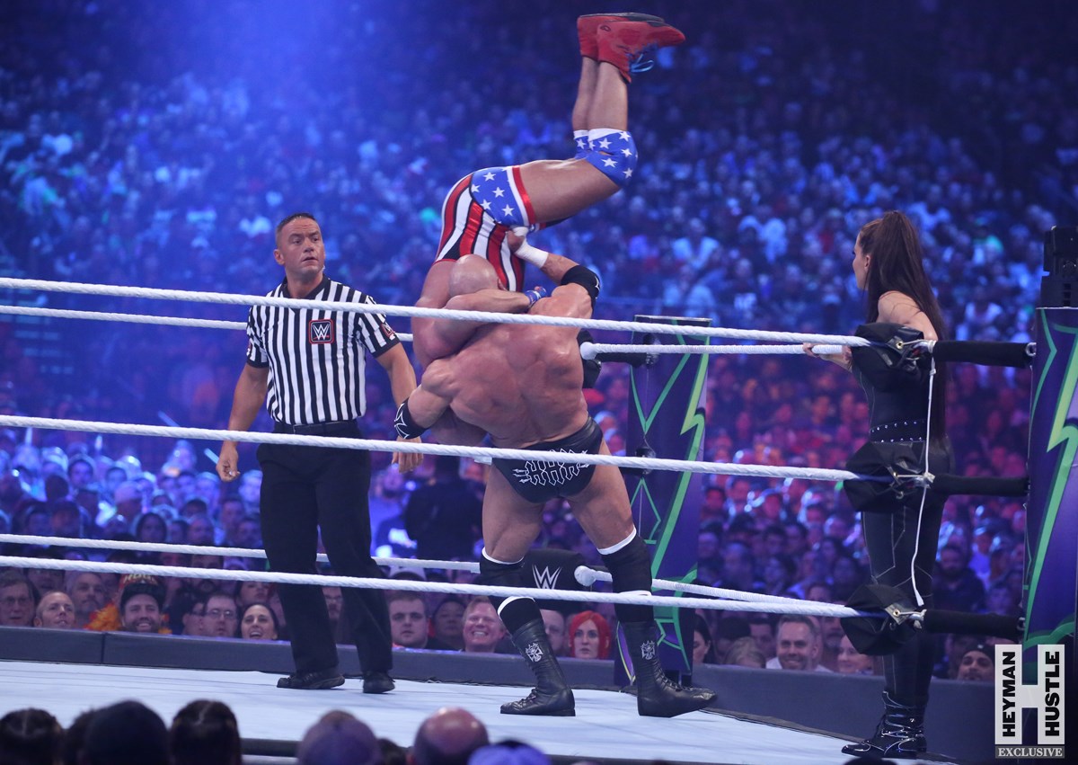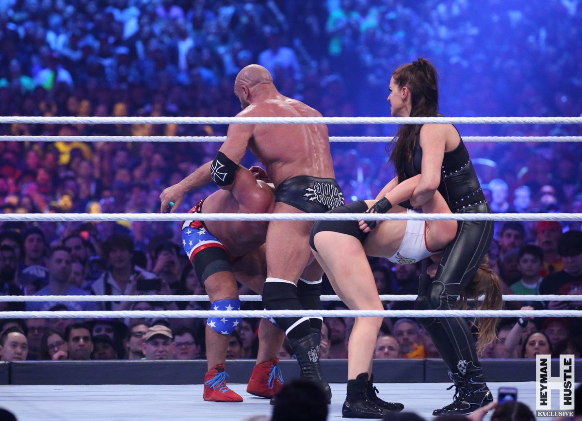 Rowdy Ronda Rousey has made her official in-ring debut for World Wrestling Entertainment, forcing RAW Commissioner Stephanie McMahon to tap out to … what else? … an arm bar in the match that many feel stole the entire show last night at WrestleMania 34. Rousey and fellow Olympian Kurt Angle triumphed over McMahon and WWE COO Triple H in an epic encounter for the ages. The Heyman Hustle‘s very own Bruno Silveira was on hand to provide EXCLUSIVE photo coverage of the historic event.