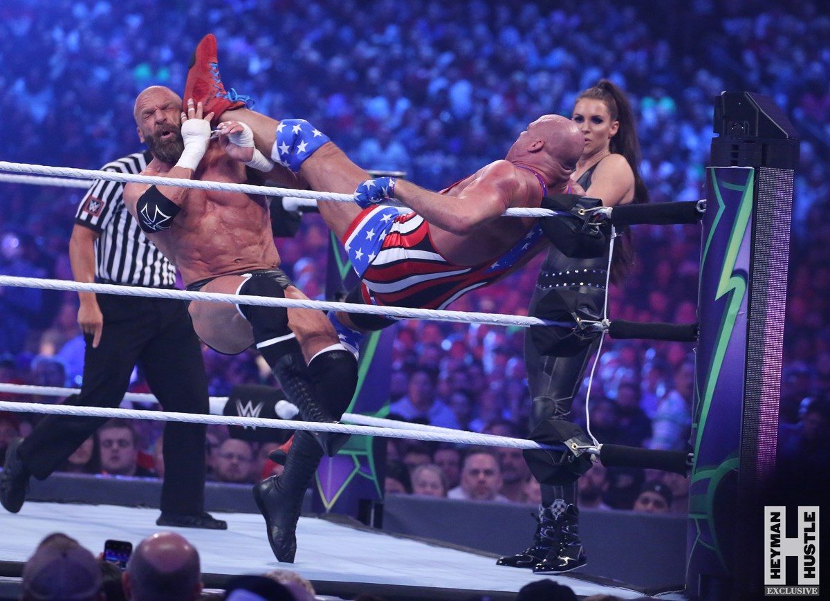 We’re HustleTweeting about Rowdy Ronda Rousey and Kurt Angle vs Stephanie McMahon and Triple H at WrestleMania 34, and you’re more than welcome to join the conversation on the Hustle Twitter HERE and also on our hyper-interactive Facebook page HERE!