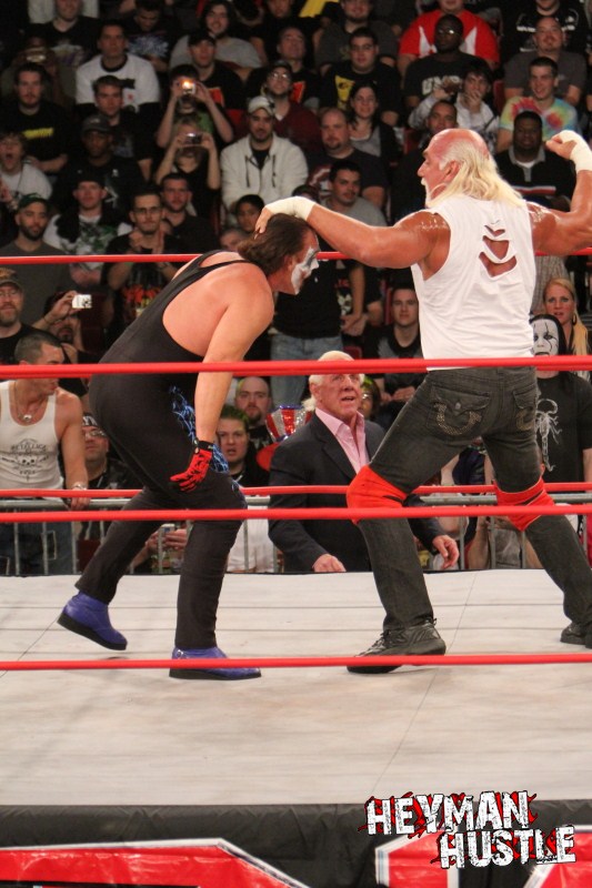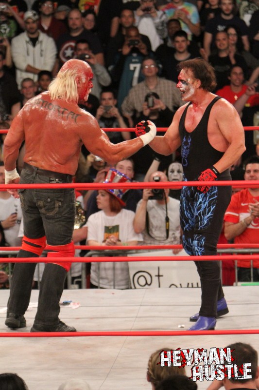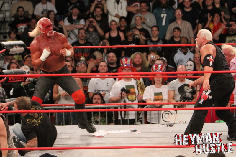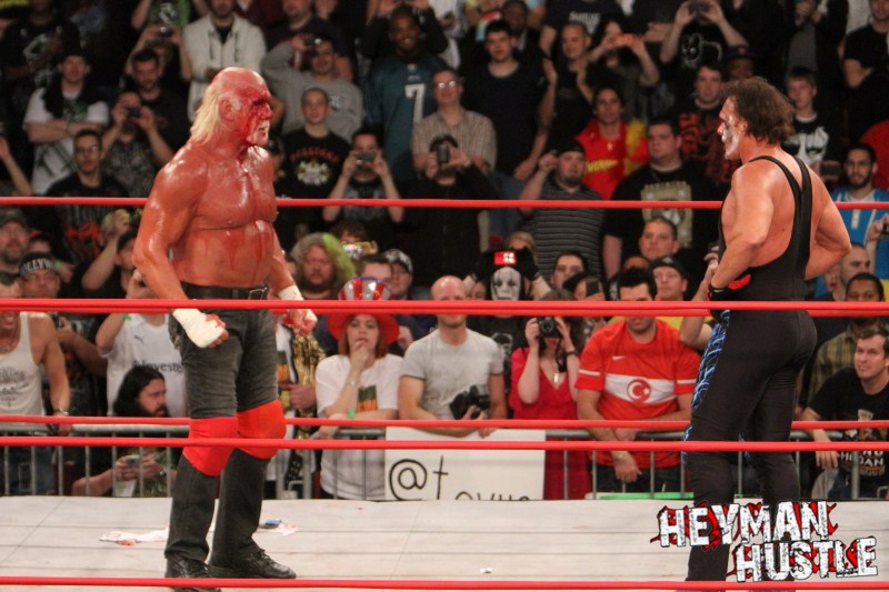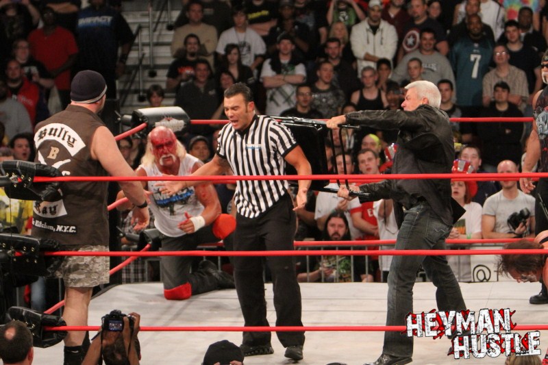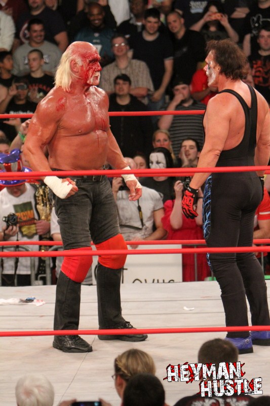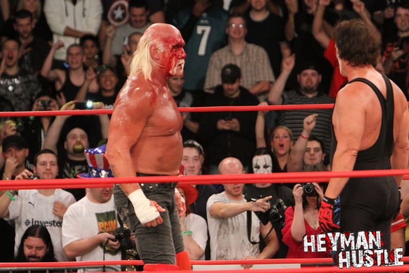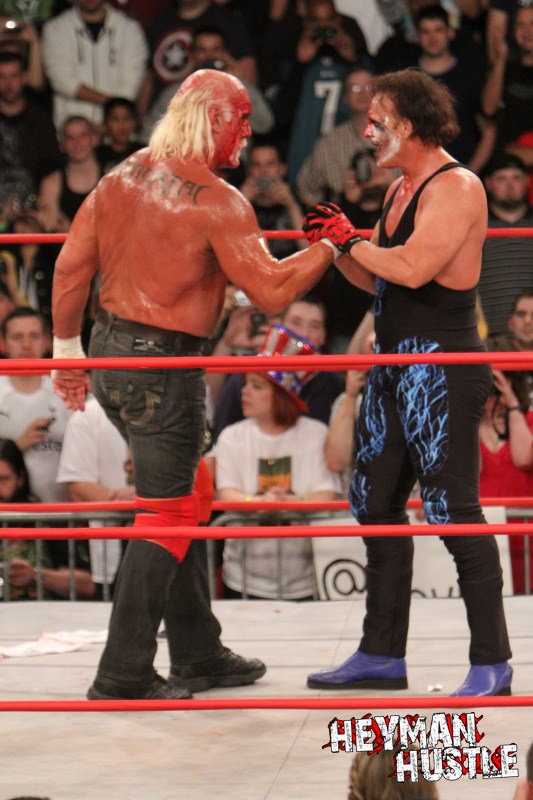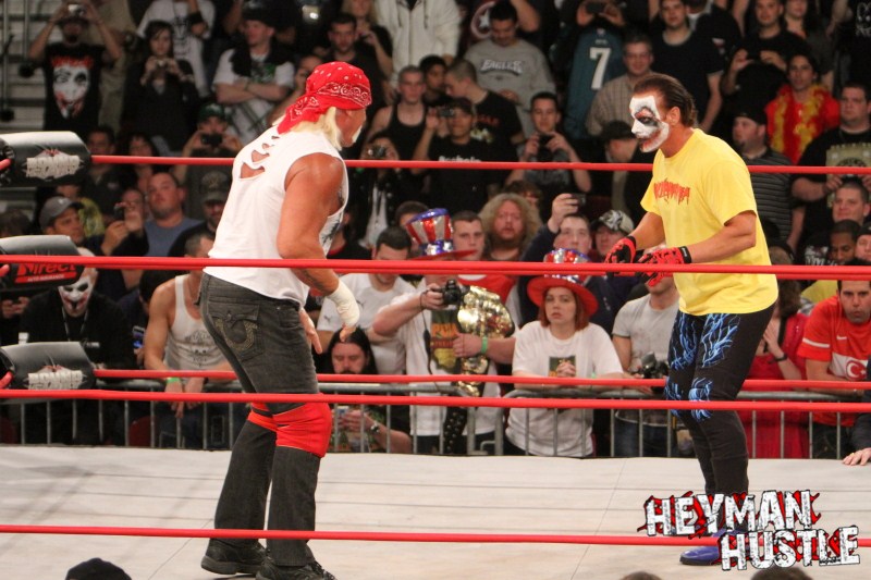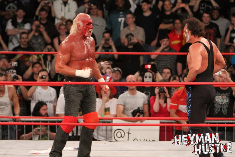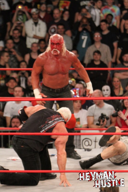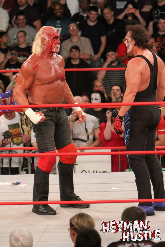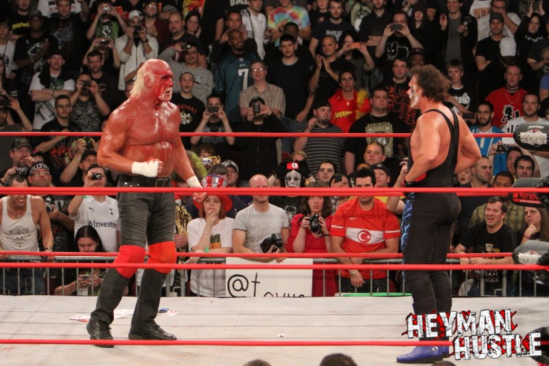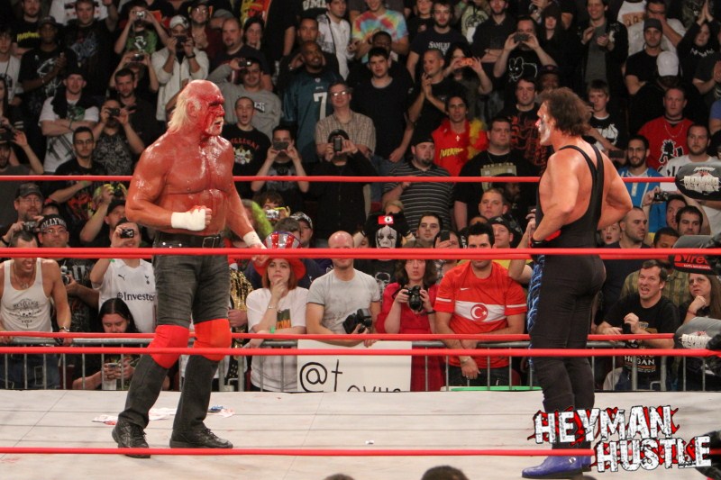 Celebrated pro wrestling photographer George Tahinos’ exclusive photo gallery of over 350 UHQ photographs from the Hulk Hogan and Sting’s epic fight in Philadelphia has been posted … and THE HEYMAN HUSTLE is proud to be the only media source to present the entire full color gallery for your review!