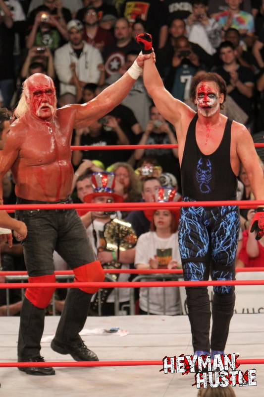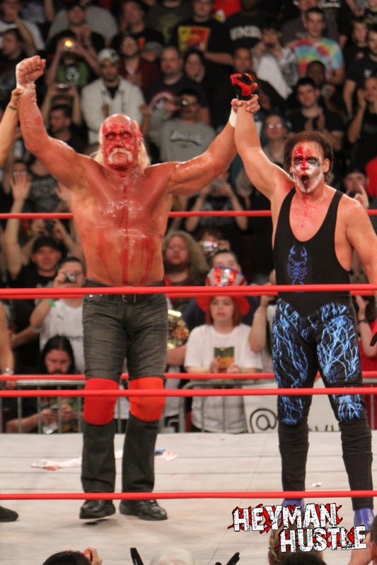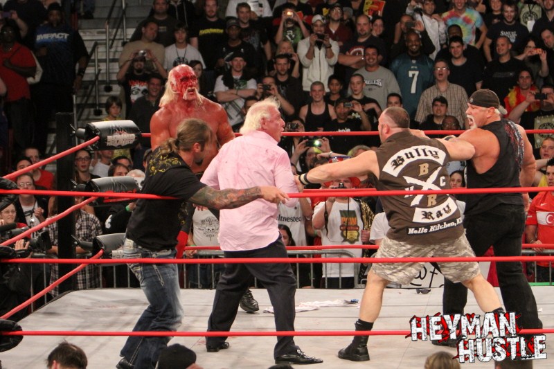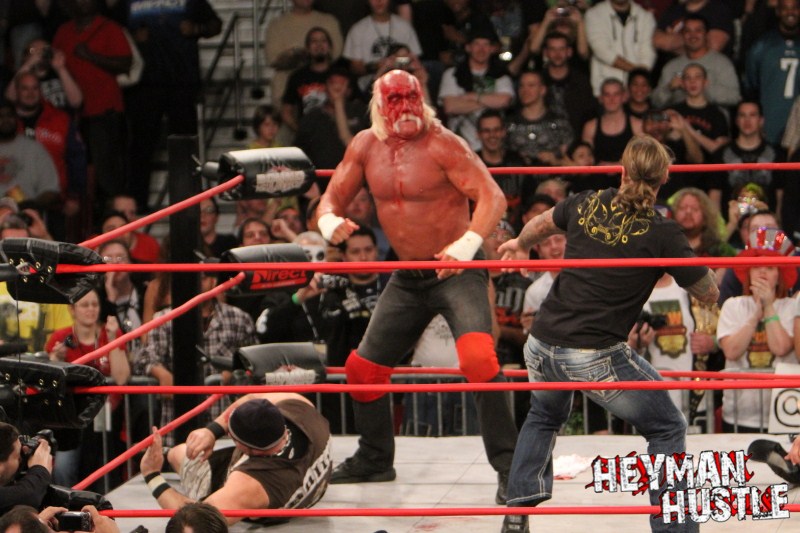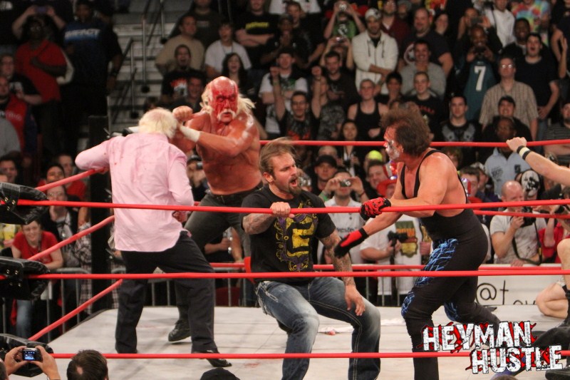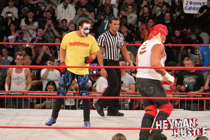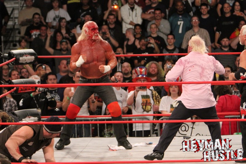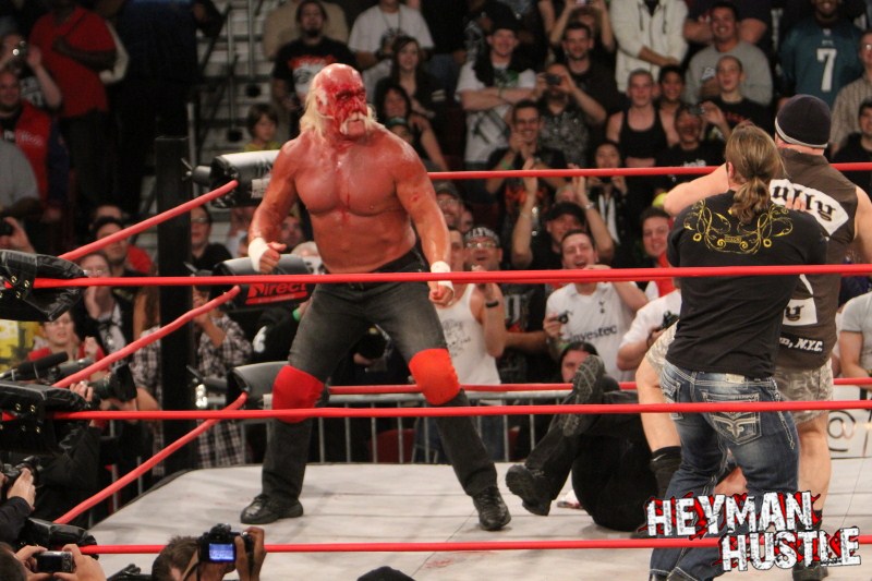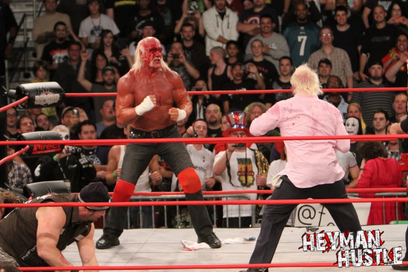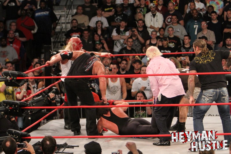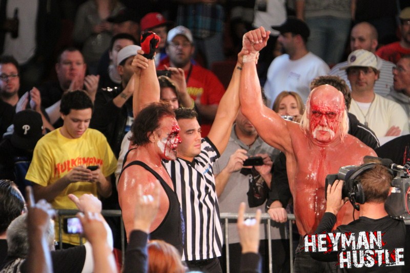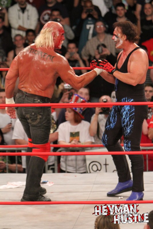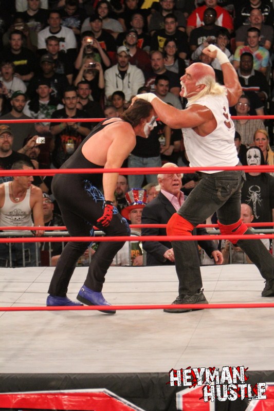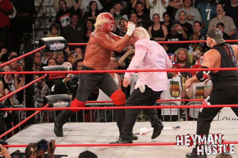 Celebrated pro wrestling photographer George Tahinos’ exclusive photo gallery of over 350 UHQ photographs from the Hulk Hogan and Sting’s epic fight in Philadelphia has been posted … and THE HEYMAN HUSTLE is proud to be the only media source to present the entire full color gallery for your review!