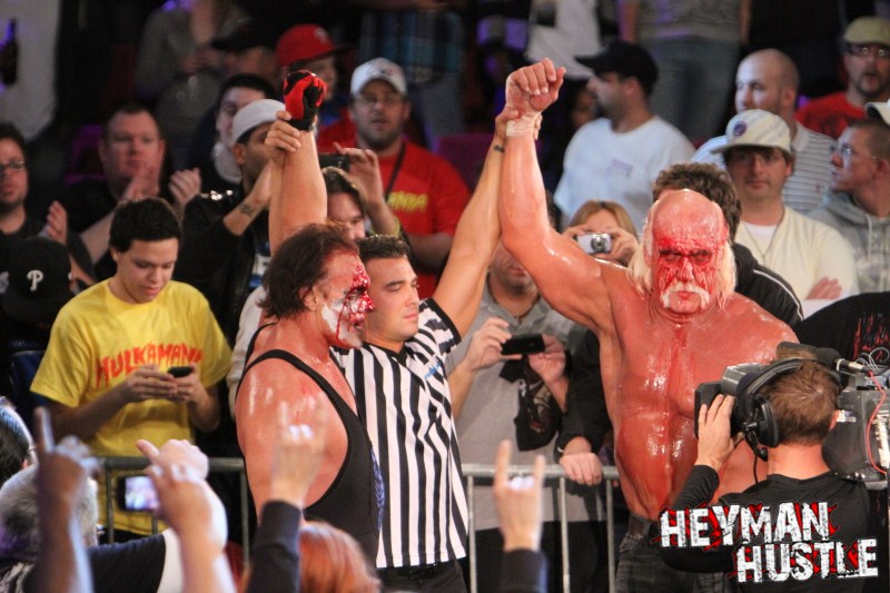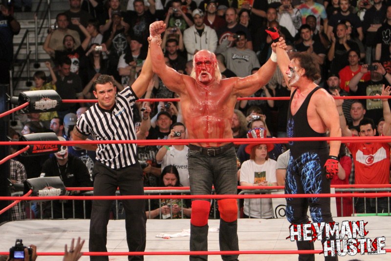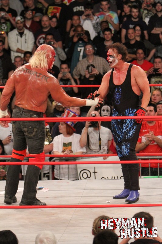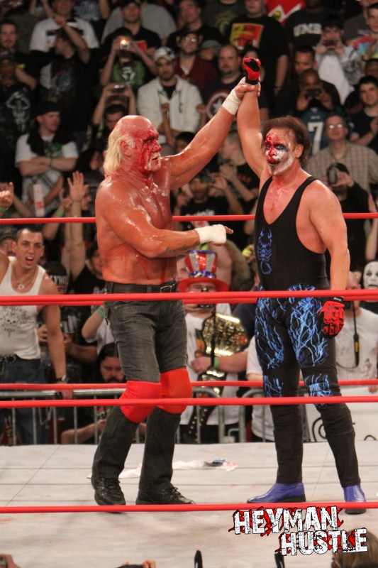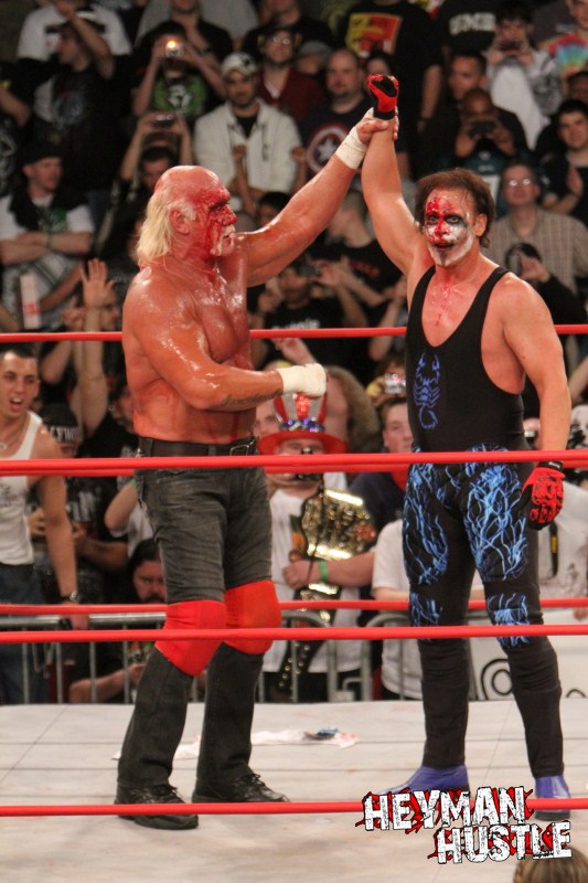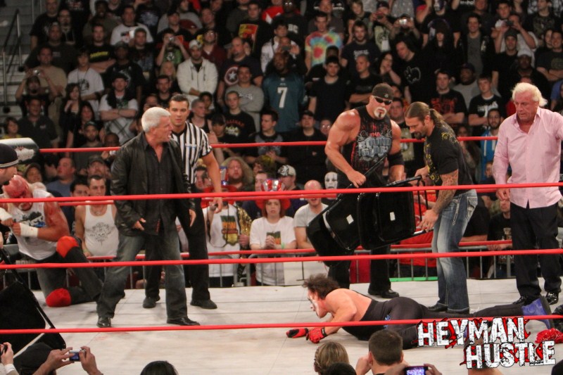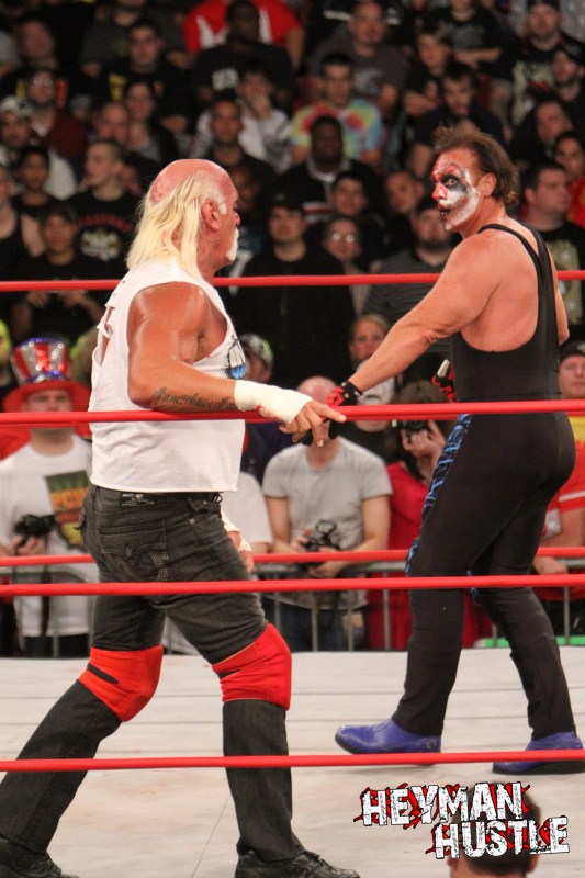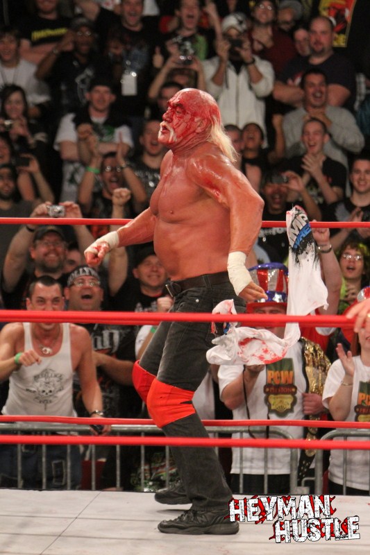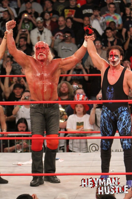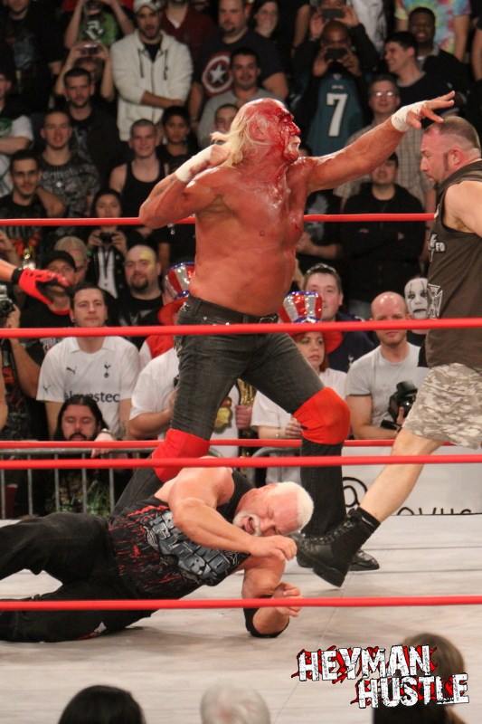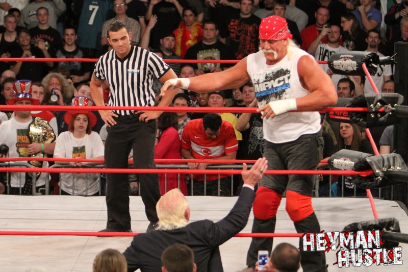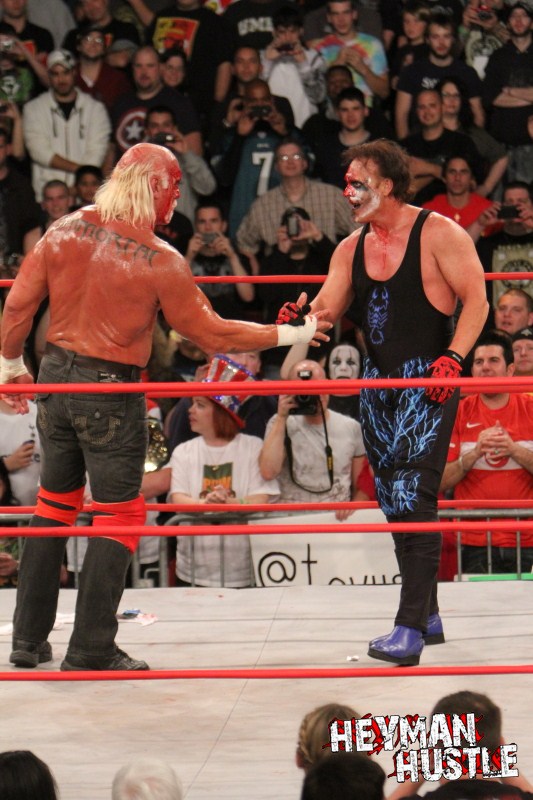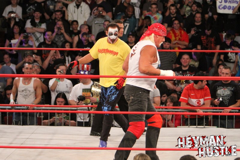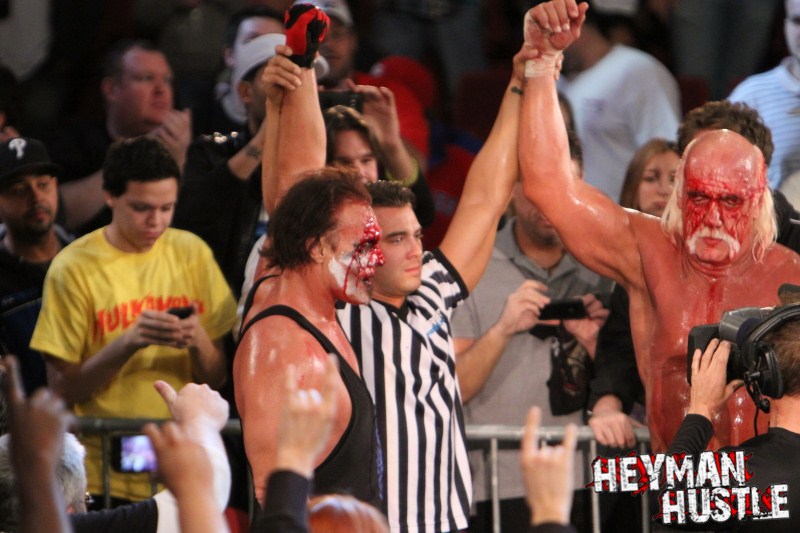 Celebrated pro wrestling photographer George Tahinos’ exclusive photo gallery of over 350 UHQ photographs from the Hulk Hogan and Sting’s epic fight in Philadelphia has been posted … and THE HEYMAN HUSTLE is proud to be the only media source to present the entire full color gallery for your review!