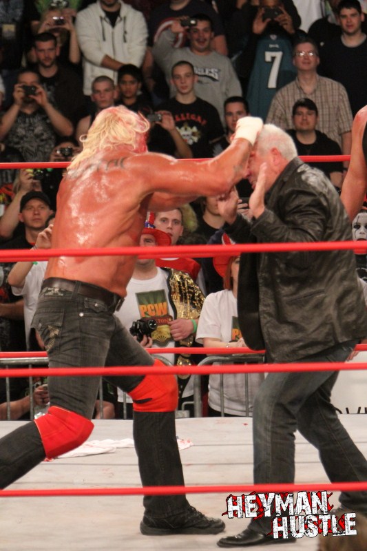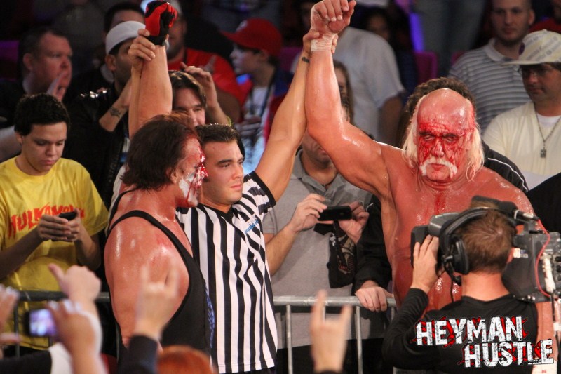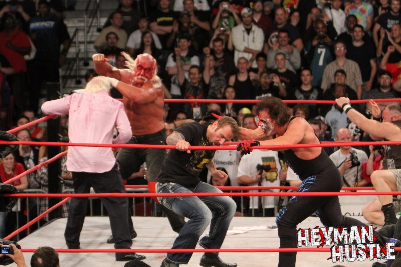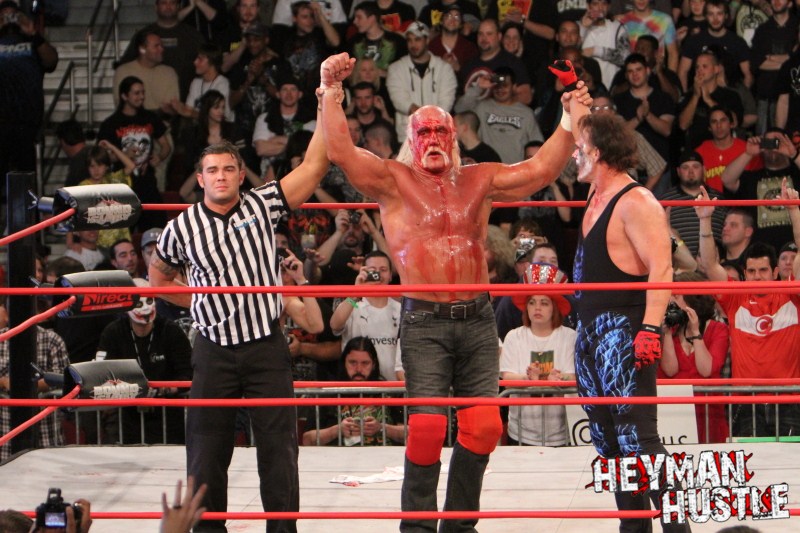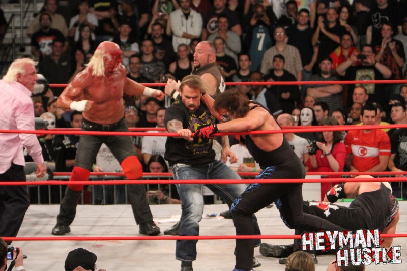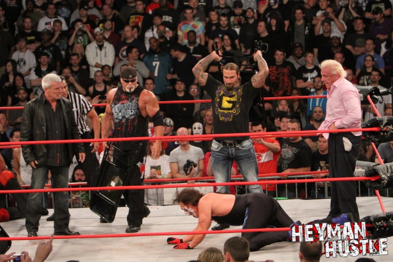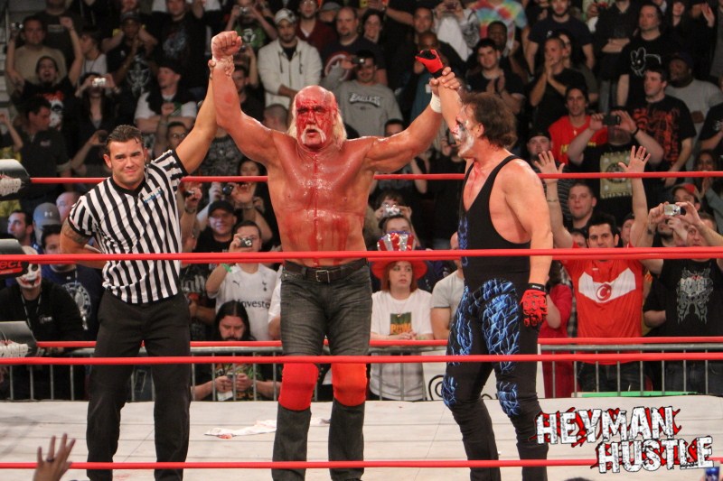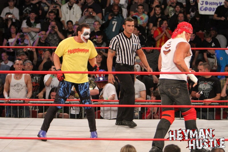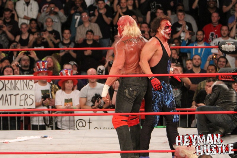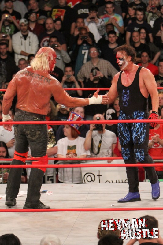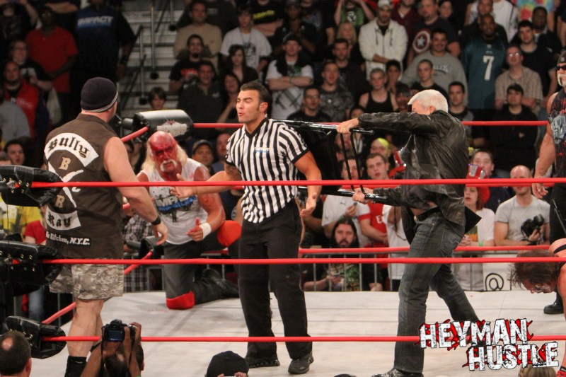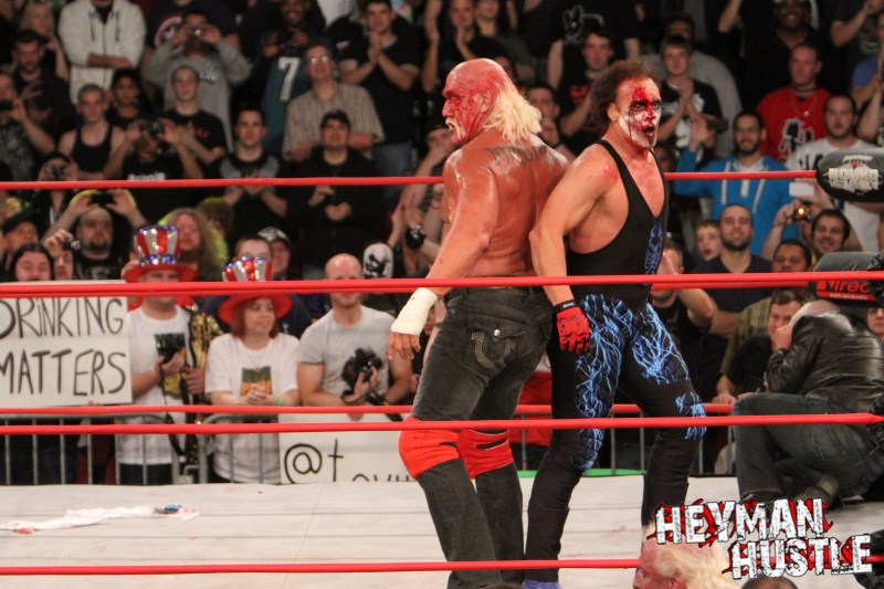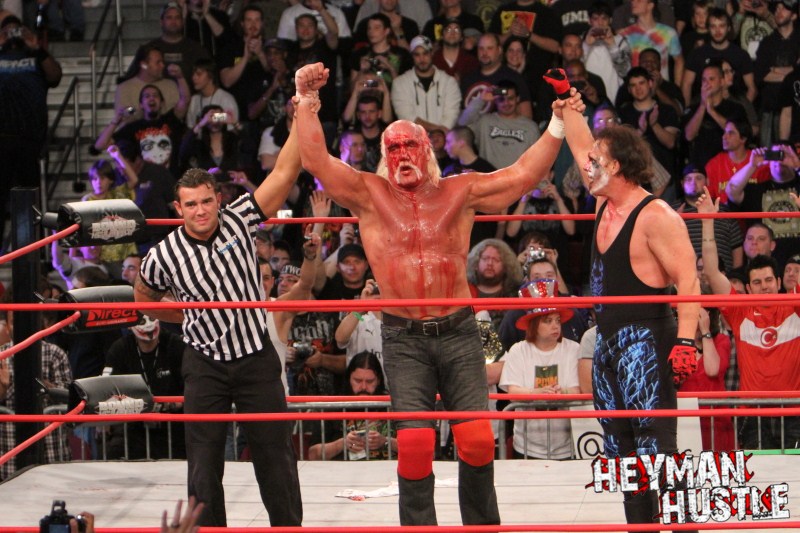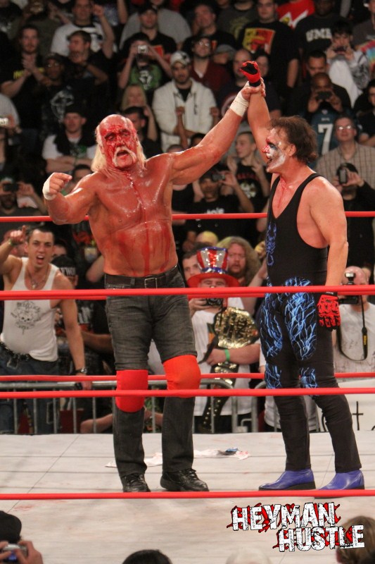 Celebrated pro wrestling photographer George Tahinos’ exclusive photo gallery of over 350 UHQ photographs from the Hulk Hogan and Sting’s epic fight in Philadelphia has been posted … and THE HEYMAN HUSTLE is proud to be the only media source to present the entire full color gallery for your review!