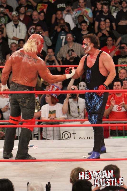 Of course, we’re HustleTweeting on Hulk Hogan vs Sting, and you’re more than welcome to join the conversation by following THE HEYMAN HUSTLE on Twitter HERE or write to us directly at hustleoncrave@gmail.com