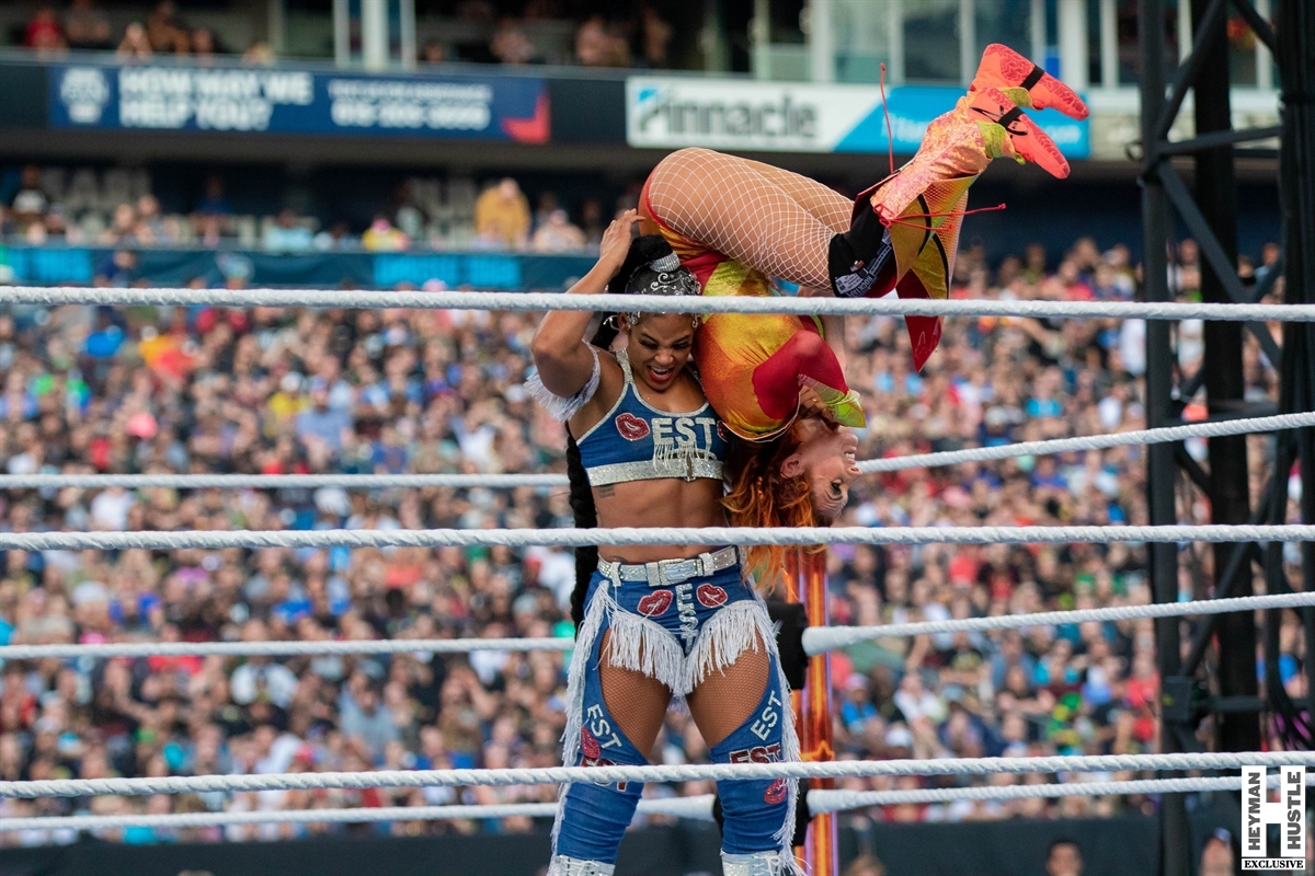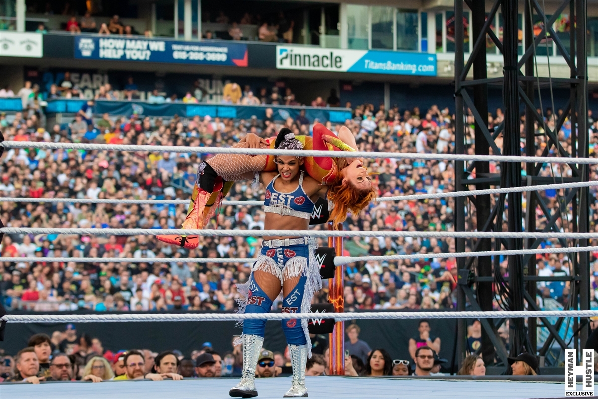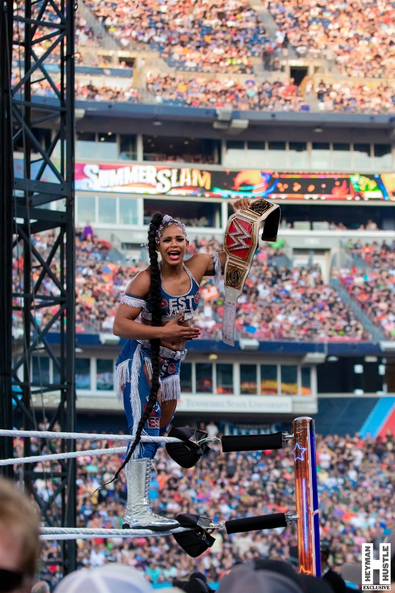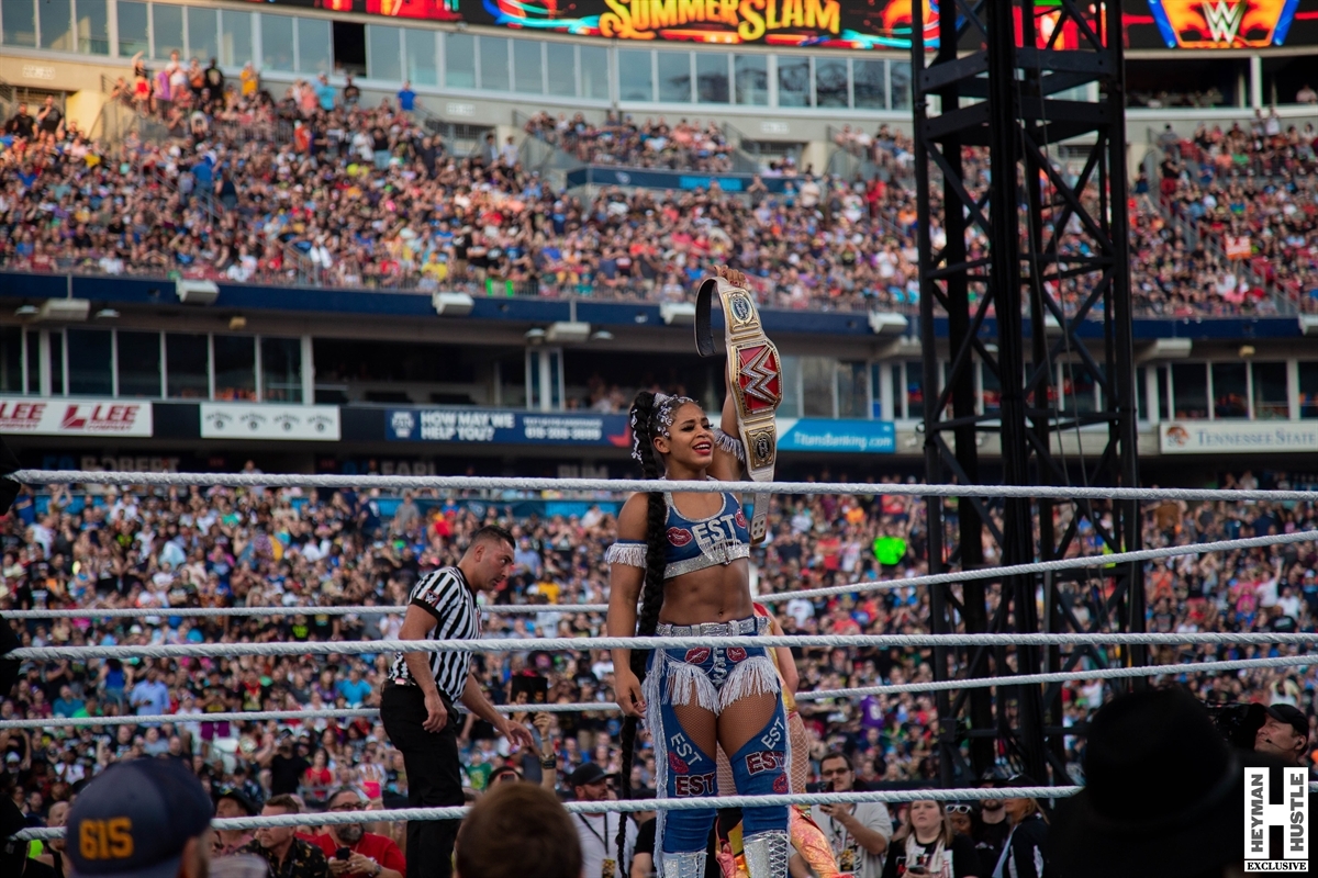 Photographer Jake McGrath joined the Hustle’s traveling squad who hit Nissan Stadium in Nashville, TN to cover WWE SummerSlam 2022. Jake’s coverage, EXCLUSIVE FOR THE HEYMAN HUSTLE, kicks off with RAW Women’s Champion Bianca Belair vs Becky Lynch.