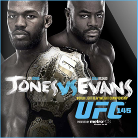 UFC 145: JONES vs EVANS will take place on April 21st from the Phillips Arena in Atlanta, Georgia, with Jon “Bones” Jones defending the UFC Light Heavyweight Championship against former friend and training partner “Sugar” Rashad Evans.