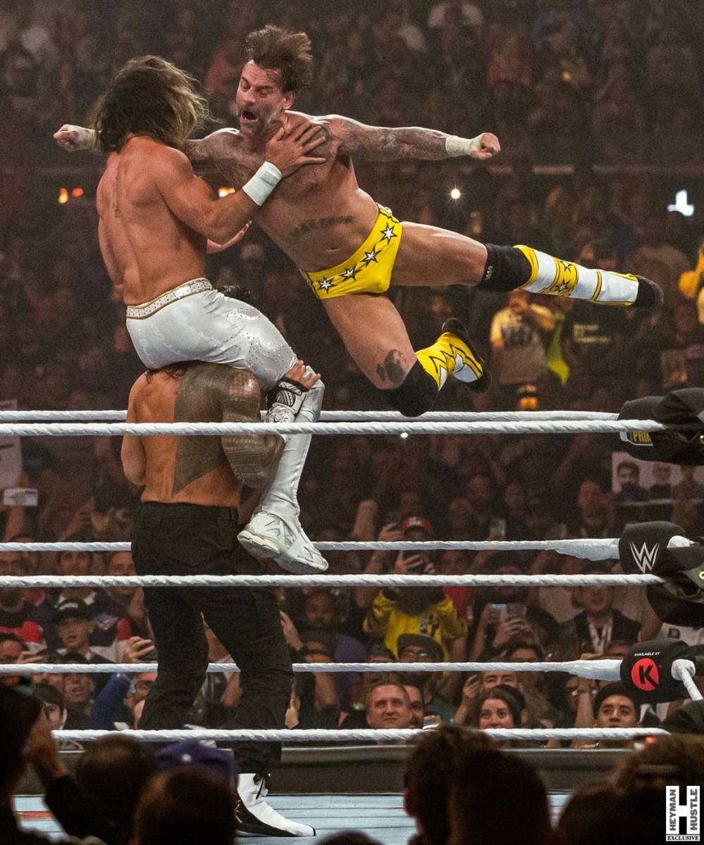 Chris Horrell was in Las Vegas to provide 360 coverage of WrestleMania 41 just for you, and here are his exclusive photos of the main event of Night 1 for WrestleMania 41. The match, a Triple Threat Match featured “The Tribal Chief” Roman Reigns vs former Shield partner Seth Freakin’ Rollins vs “The Best in the World” CM Punk who controversially had Reigns’ Wiseman (our boss) Paul Heyman in his corner as The Favor that was owed to Punk for bailing out The OG Bloodline at Survivor Series!