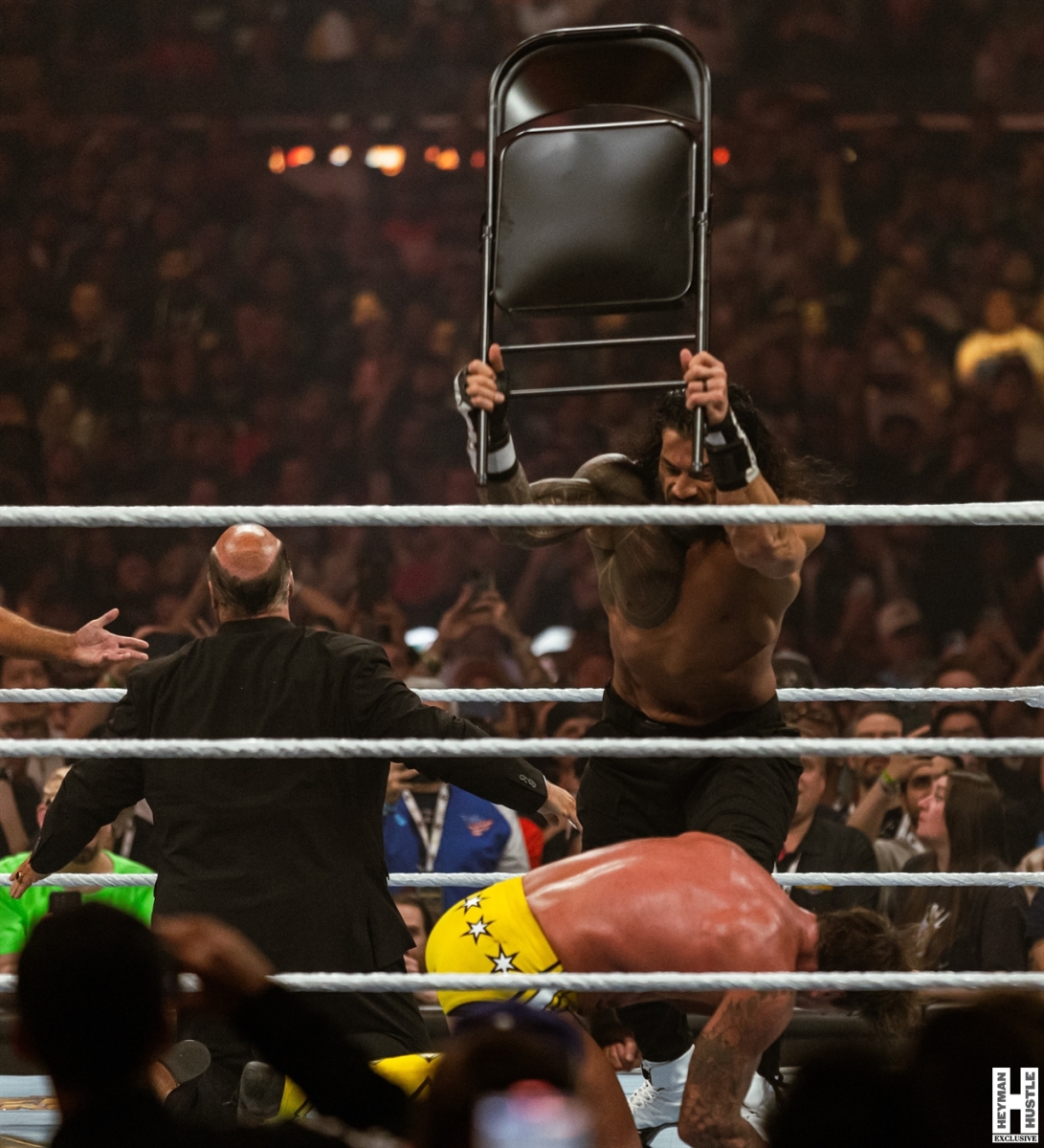 The Allegiant Stadium crowd was on its feet throughout the match, only to be shocked by and dismayed as Heyman’s actions played out in a realtime WrestleMania moment in front of our very eyes.